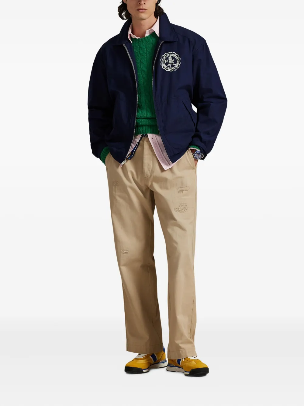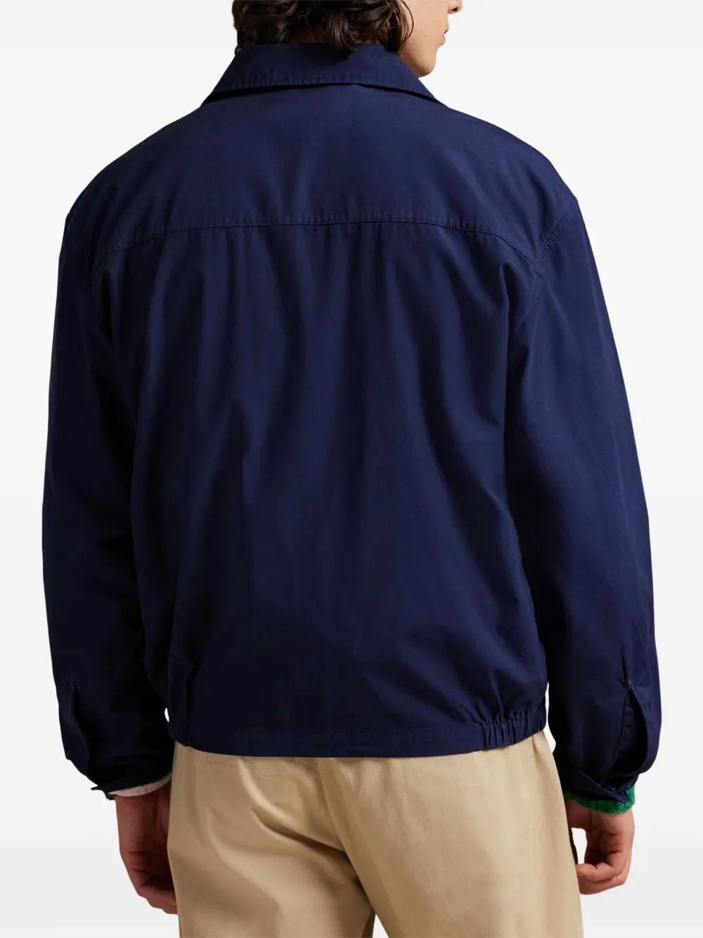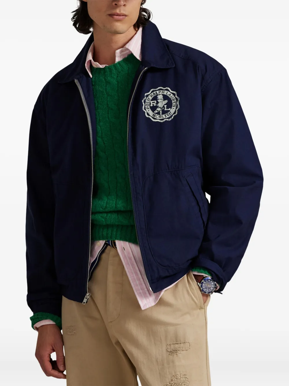 Темно-синий хлопковый холст, застежка-молния спереди, эластичные манжеты, вышитая эмблема