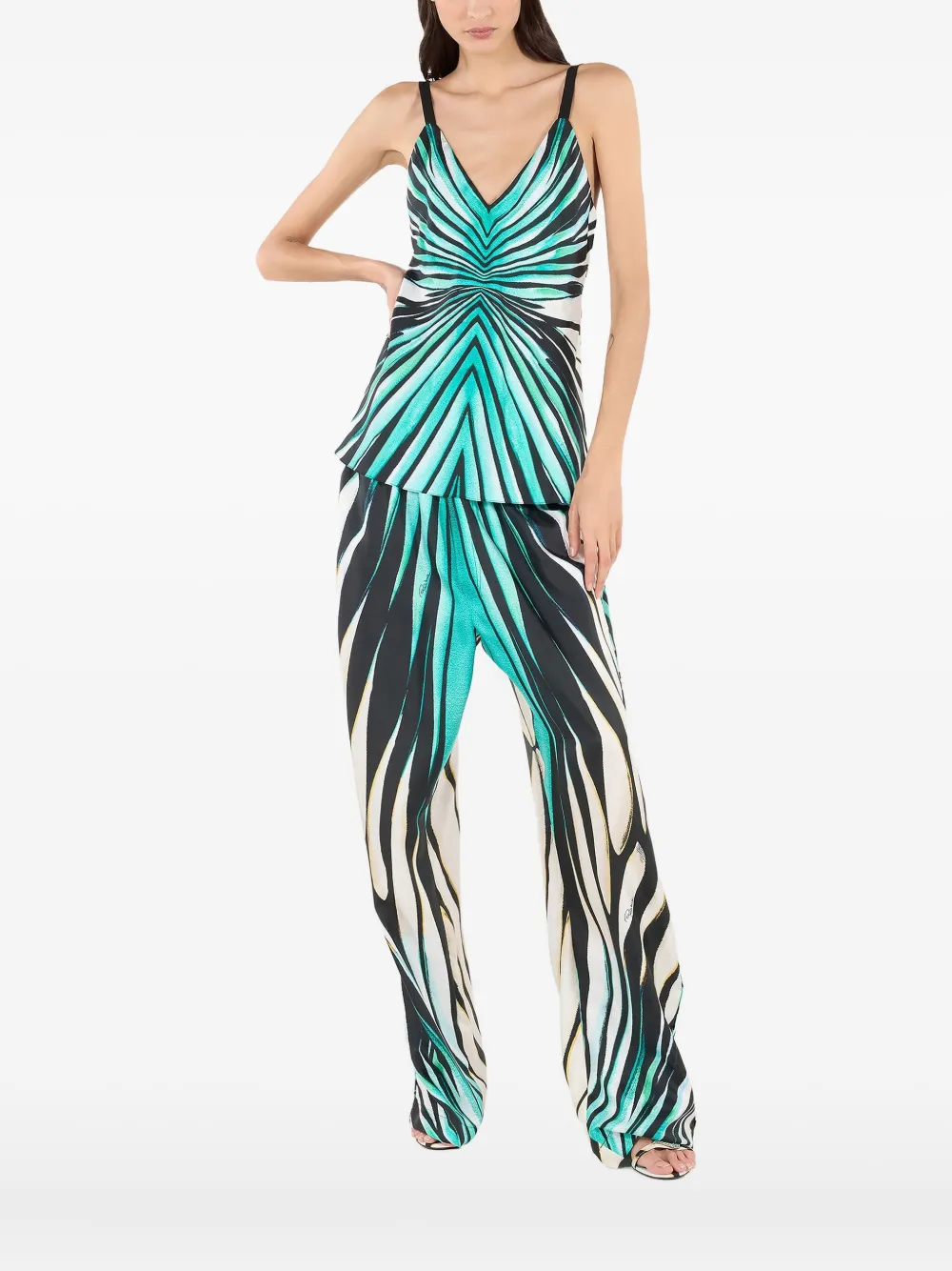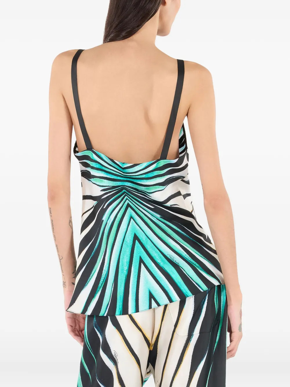 Шелковый топ с принтом Roberto Cavalli, синий