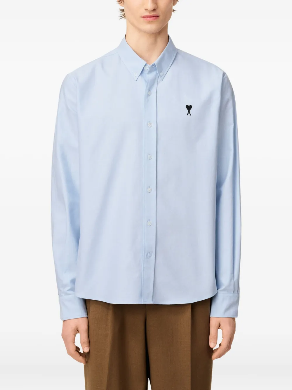 Хлопковая рубашка на пуговицах AMI Paris, синий
