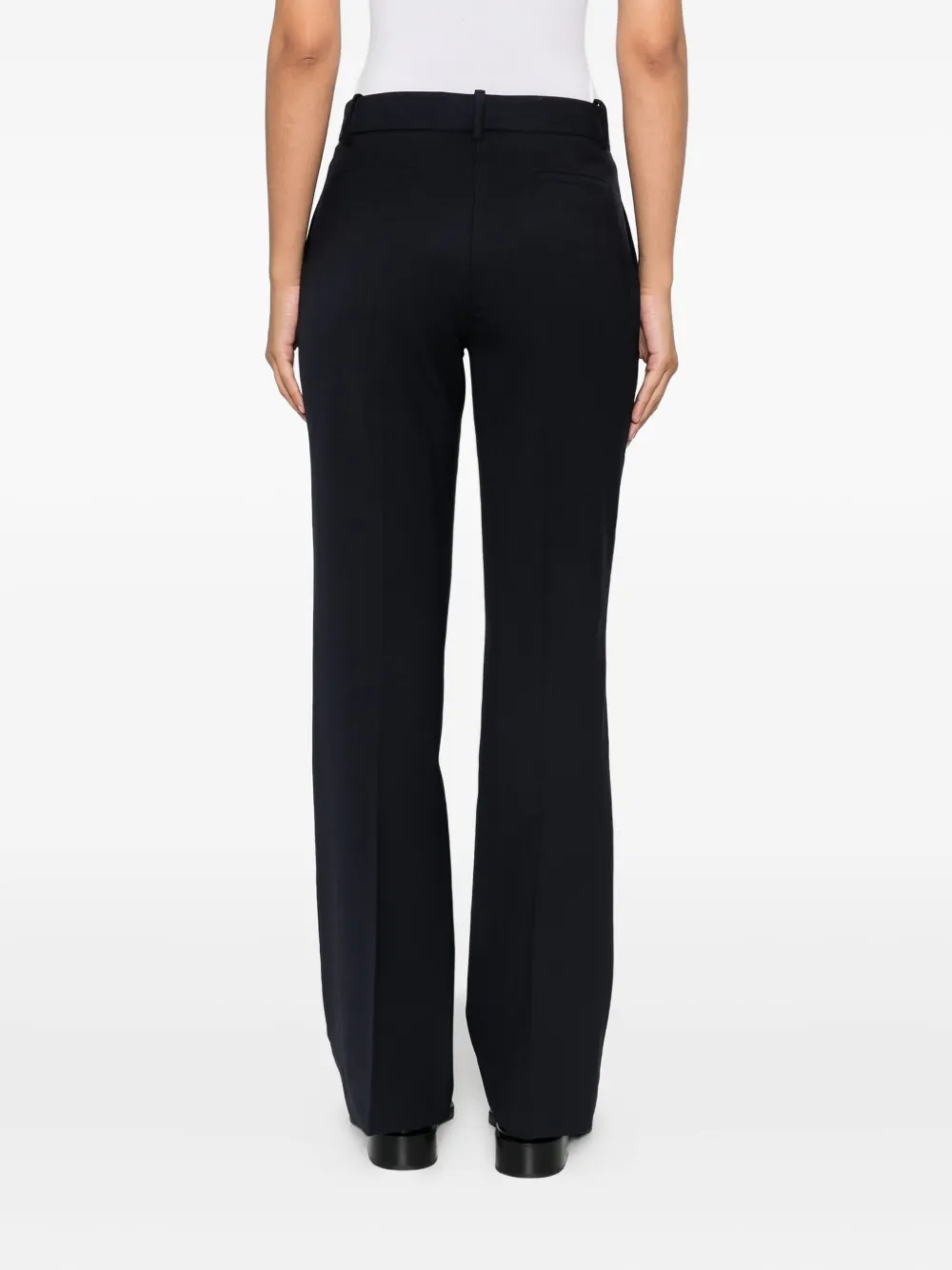 Темно-синяя шерстяная ткань, застежка на пуговицы, прорезные карманы по бокам, задние прорезные карманы