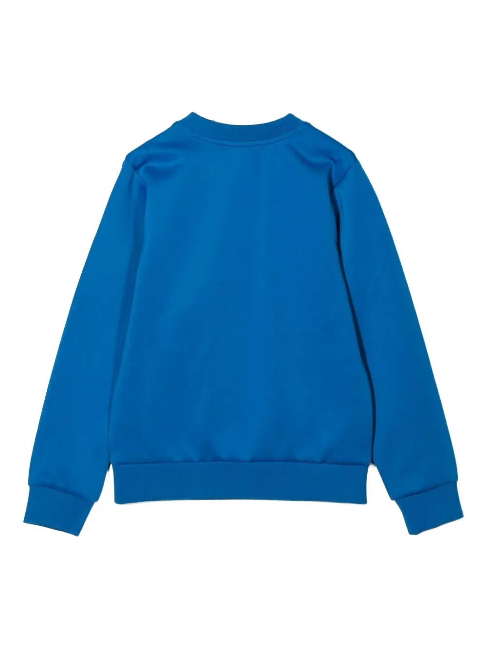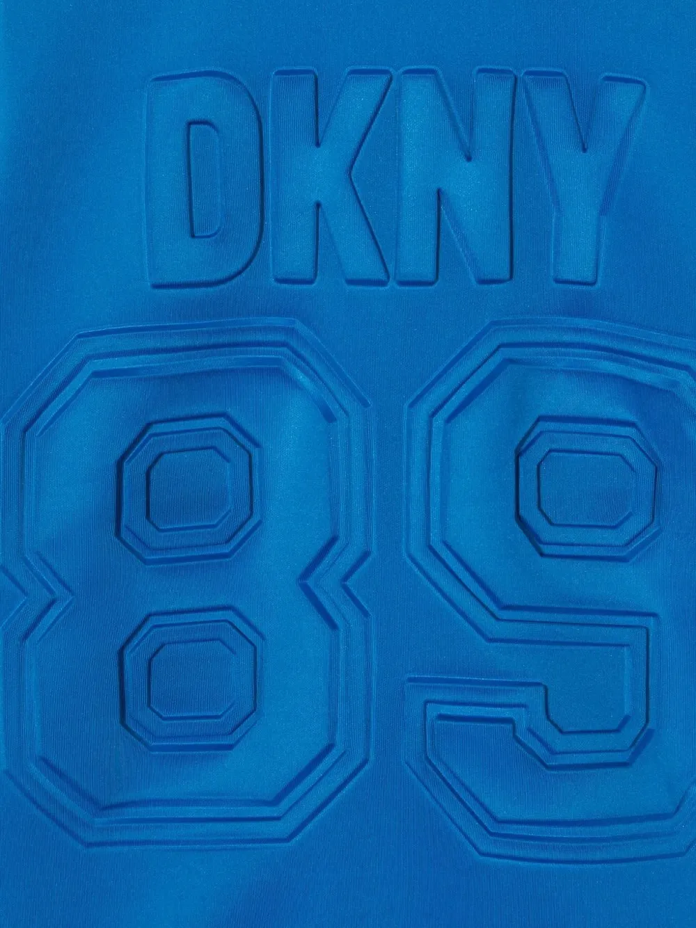Синий тисненый логотип, деталь с номером 89, круглый вырез горловины, длинные рукава, ребристые манжеты