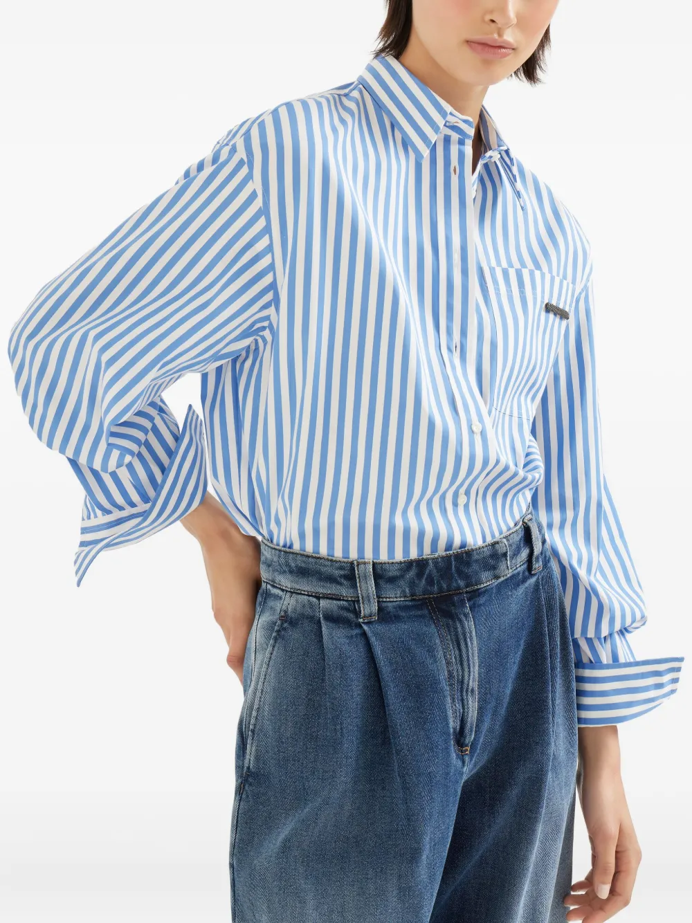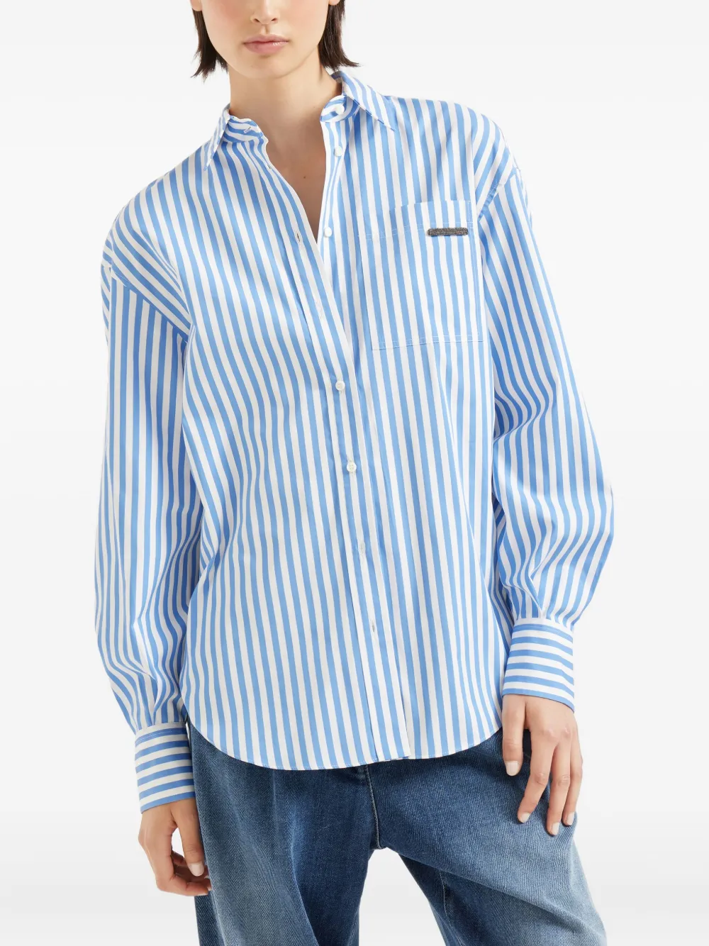 Поплиновая рубашка в полоску Brunello Cucinelli, синий