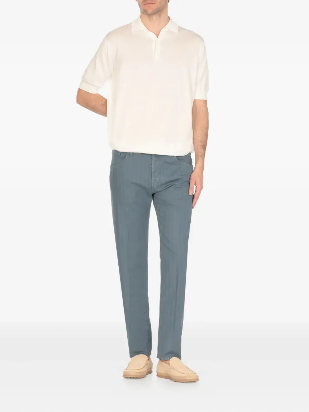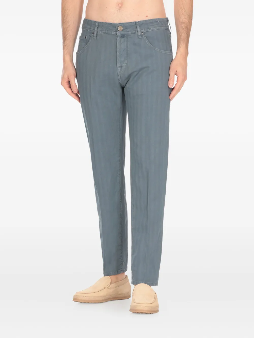 Светло-голубая потайная застежка на пуговицы, шлевки для ремня, классические пять карманов, декоративная строчка