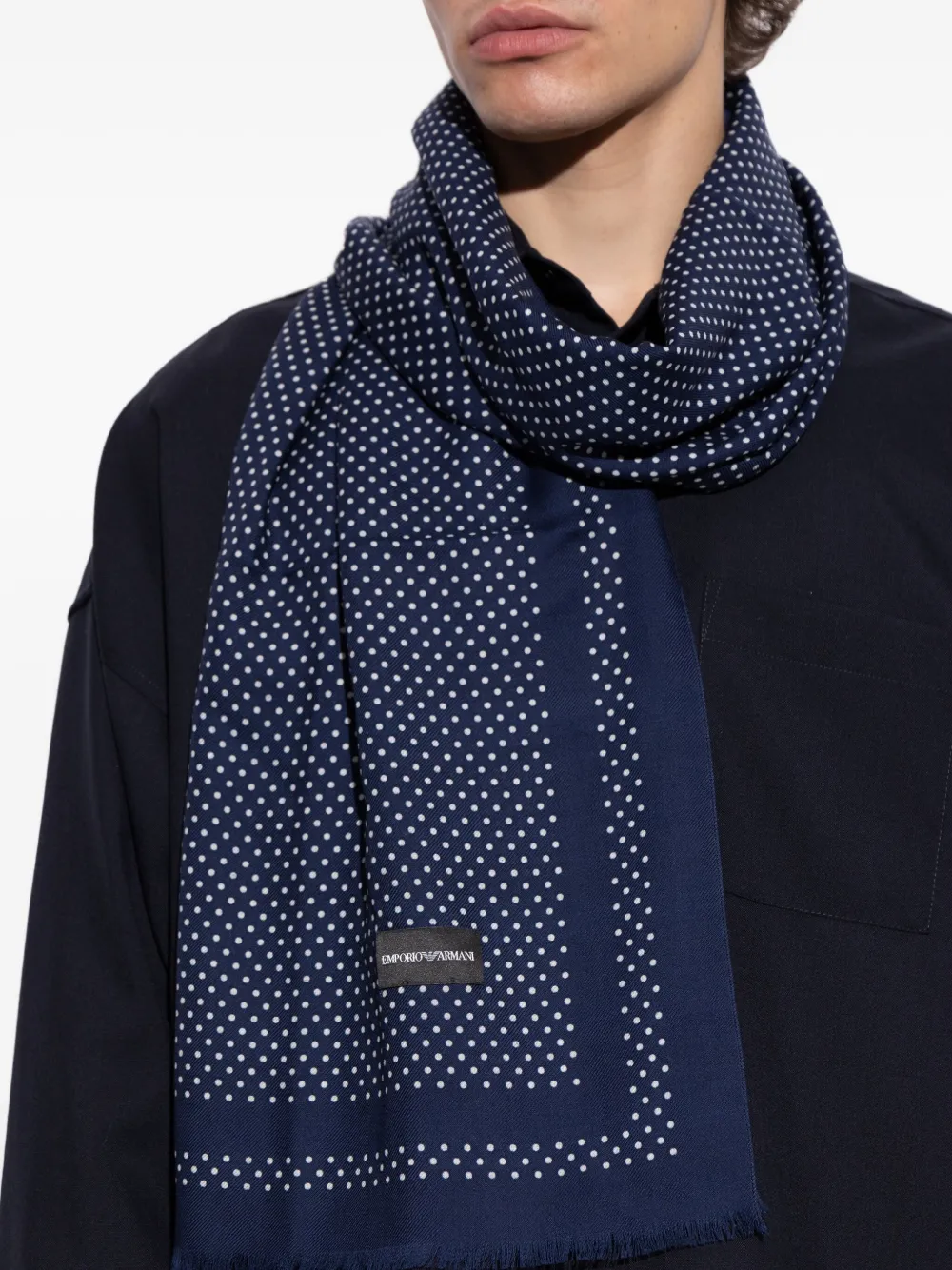 Шерстяной шарф в горох EMPORIO ARMANI, синий