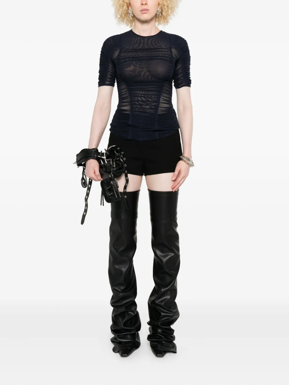 Сетчатый топ с короткими рукавами Mugler, синий 65 410₽
