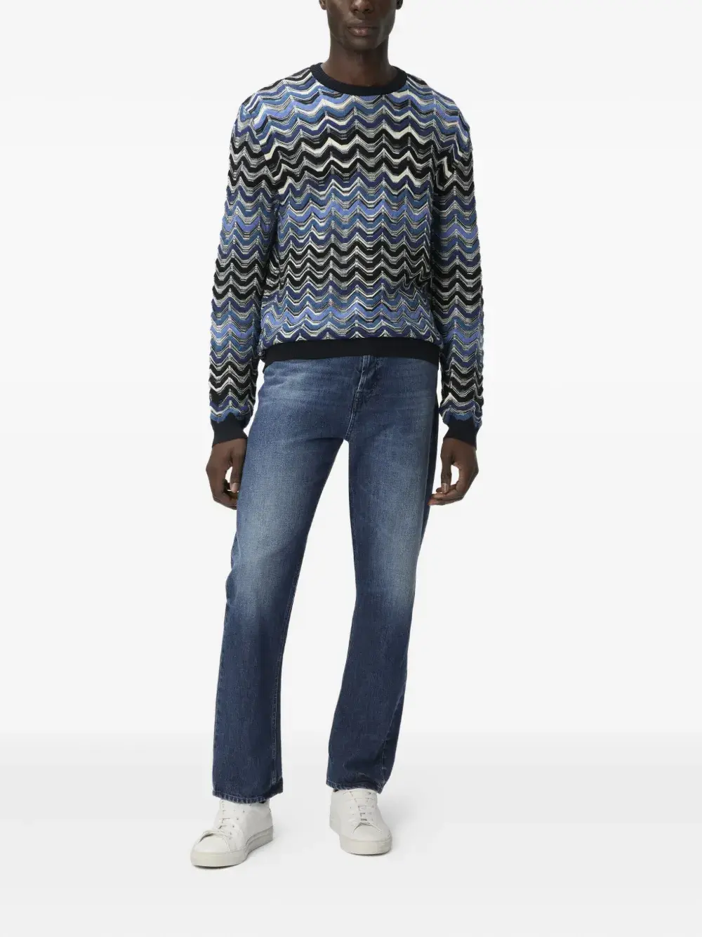 Синий шевронный узор, длинные рукава, круглый вырез. Полученный вами товар может немного отличаться от представленного на фотографии. Это связано с тем, что все изделия Missoni изготавливаются вручную.