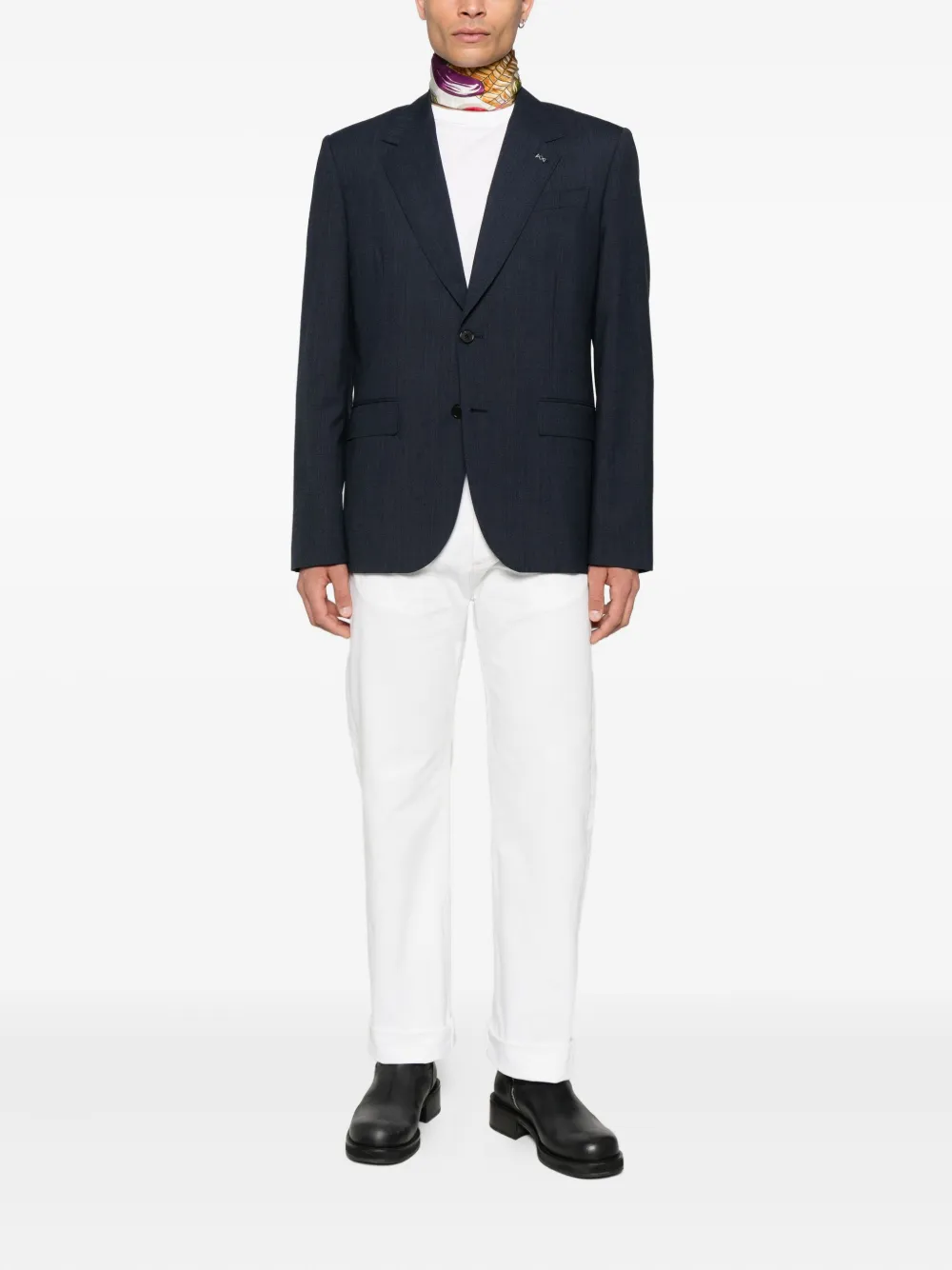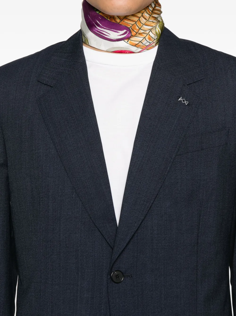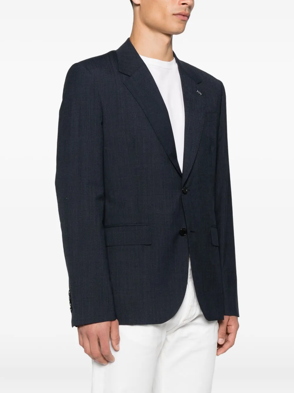 Темно-синие застежки на две пуговицы, заостренные лацканы
