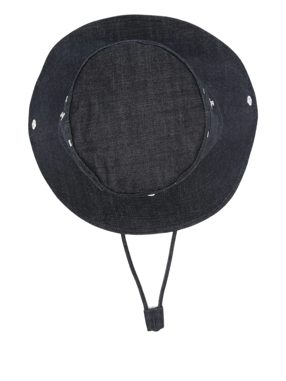 Темно-синяя хлопковая шляпа с широкими полями, затягивающимся шнурком, надписью логотипа