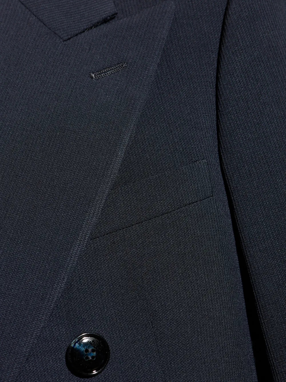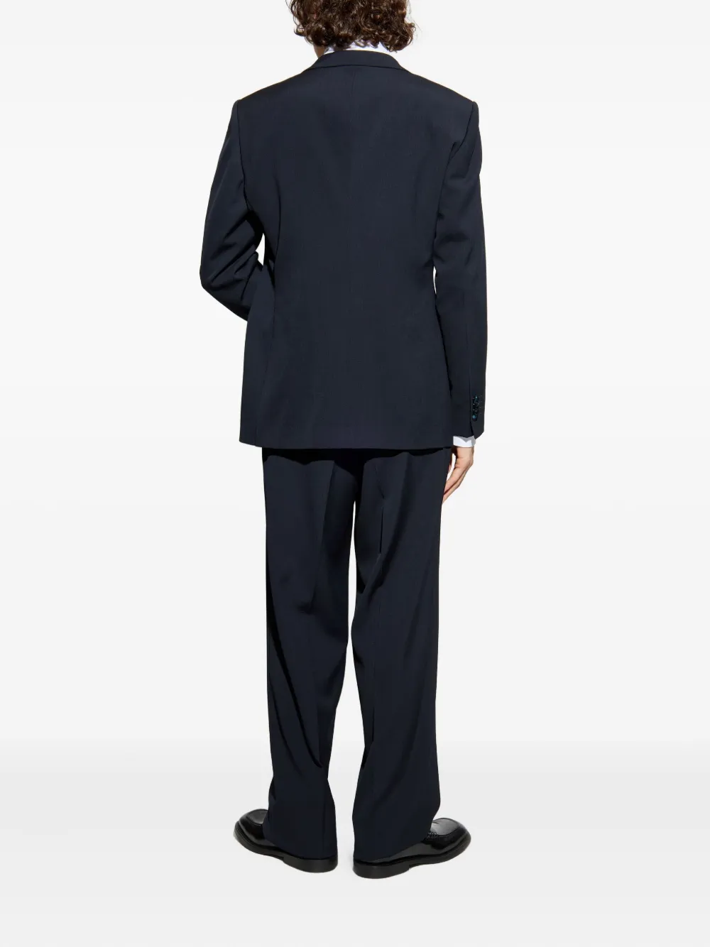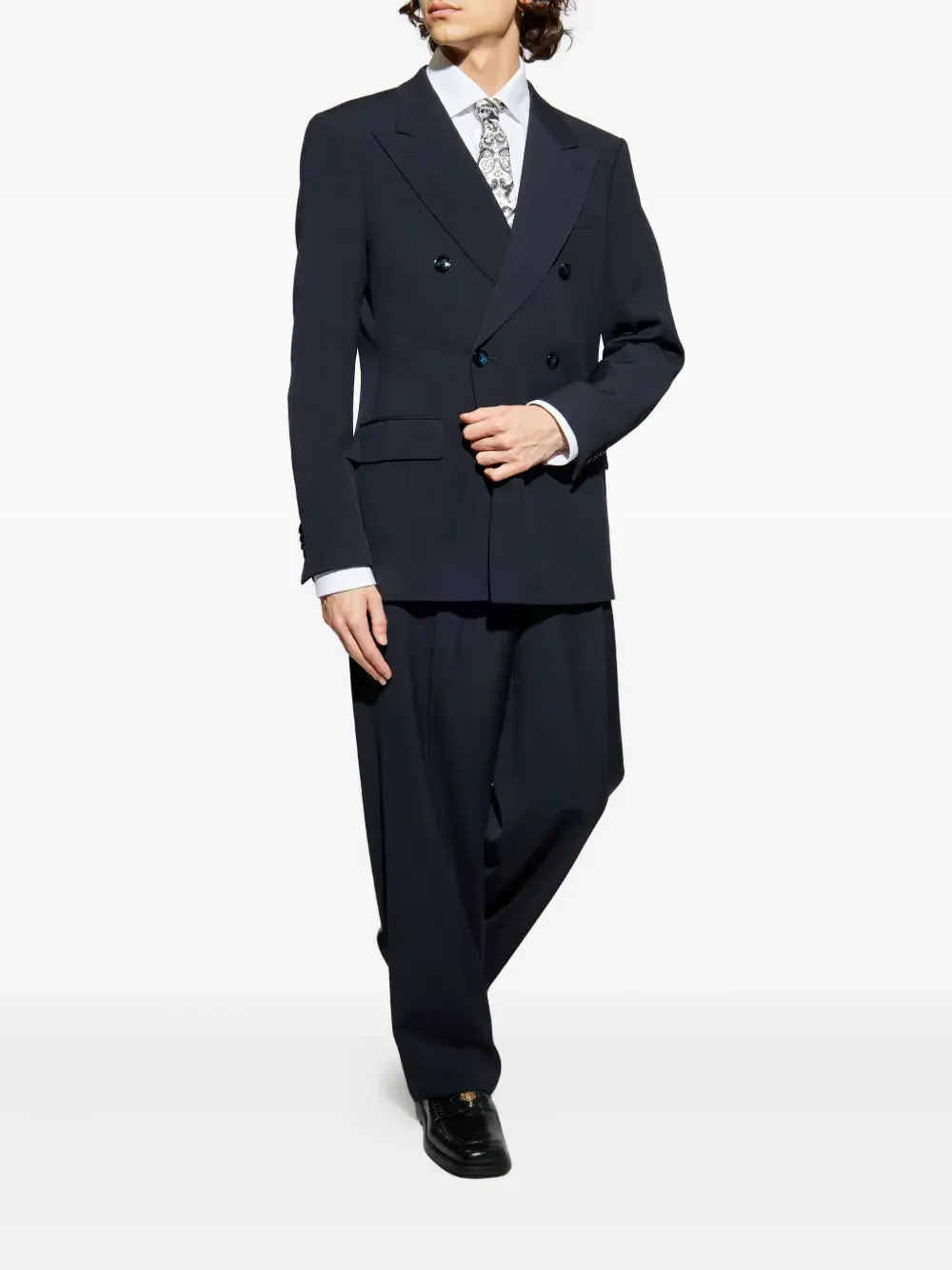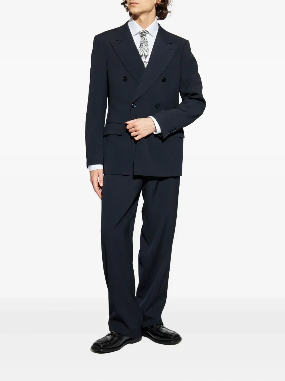 Темно-синие двубортные брюки с заостренными лацканами, застегивающиеся на шесть пуговиц, прямые, шерстяная ткань