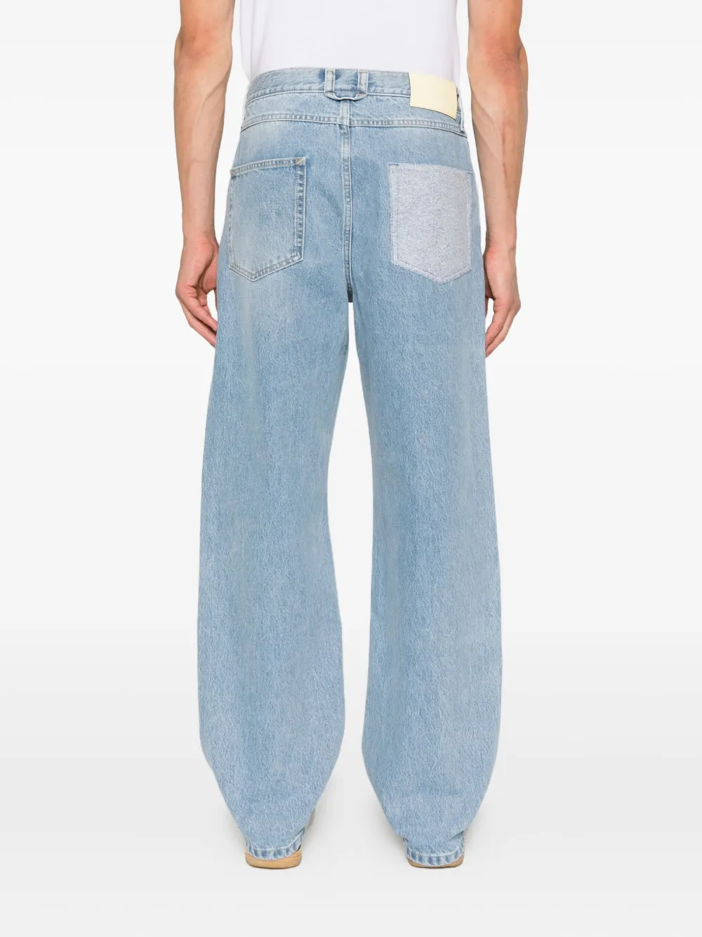 Светло-голубой пэчворк-дизайн, тональная строчка, эффект выцветания, шлевки для ремня