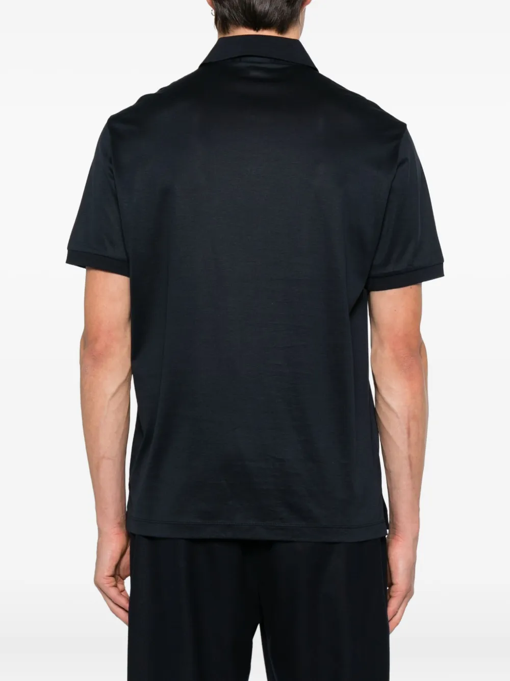 Темно-синие короткие рукава, застежка на пуговицы, вышитый логотип