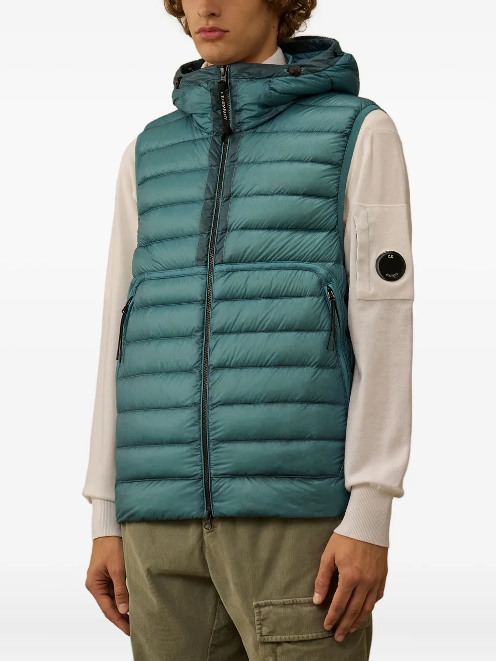 Стеганый пуховый жилет с капюшоном C.P. Company, синий