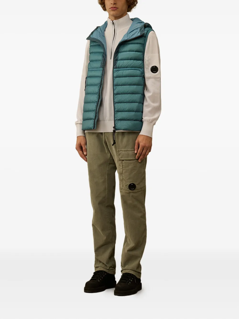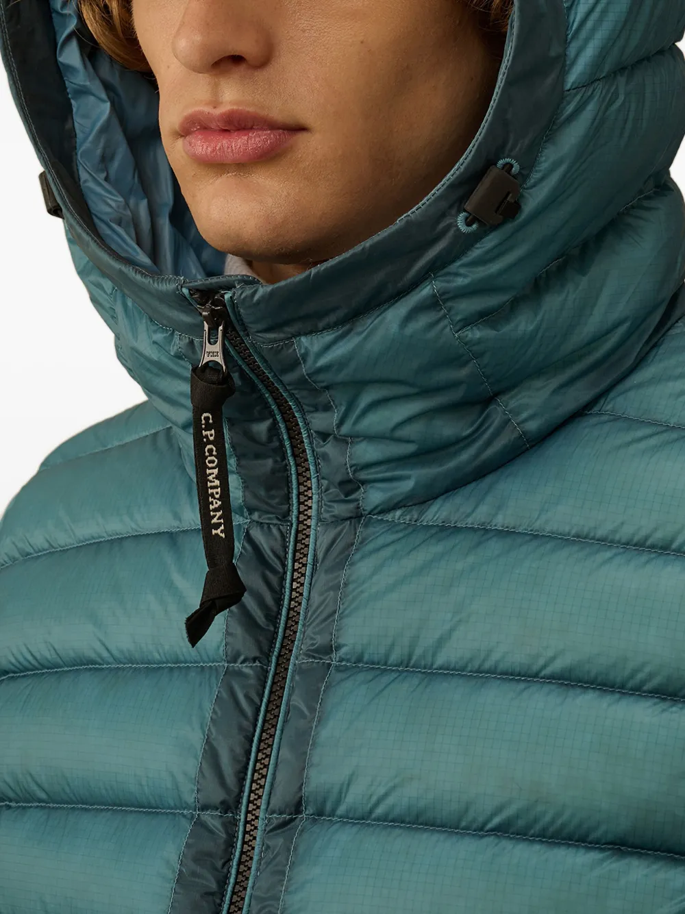 Стеганый дизайн цвета эгейского моря, капюшон, застежка-молния, фирменный мотив «Защитные очки», карманы на молнии. Компания CP Company рекомендует снимать все съемные аксессуары перед стиркой.