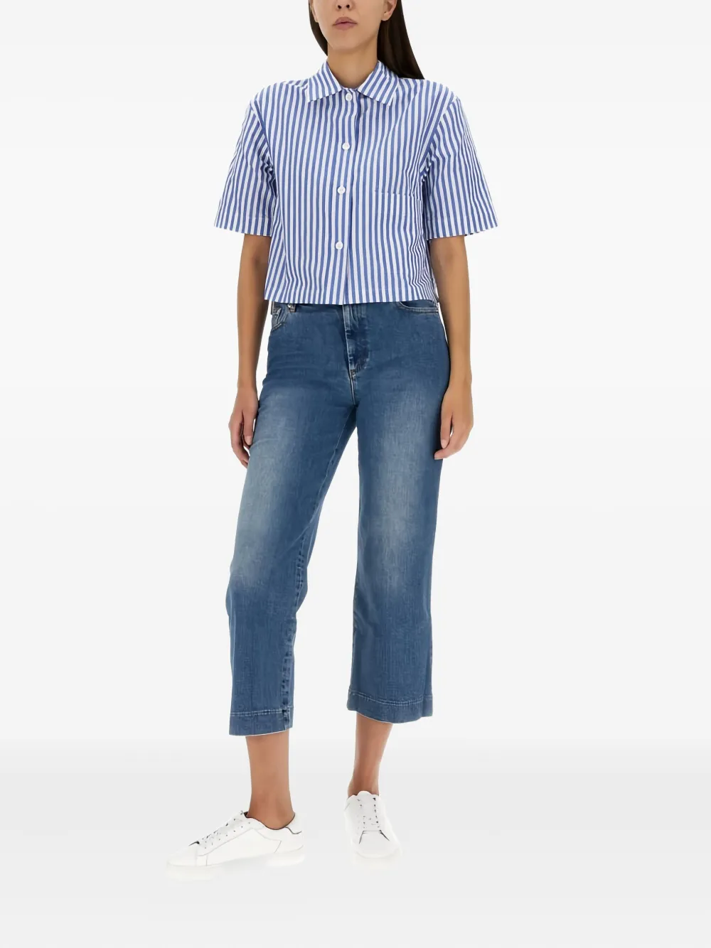 Полосатая рубашка с короткими рукавами Margaret Howell, синий