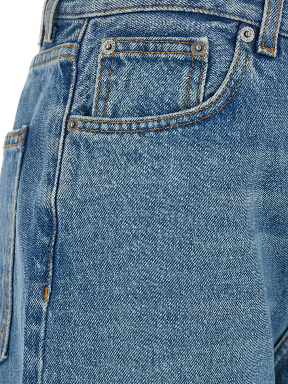 Синие брюки с высокой талией, расклешенные, пять карманов, пуговицы, шлевки для ремня