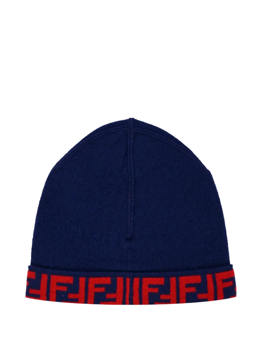 Темно-синяя шерстяно-кашемировая трикотажная шапка с отворотом и узором FF