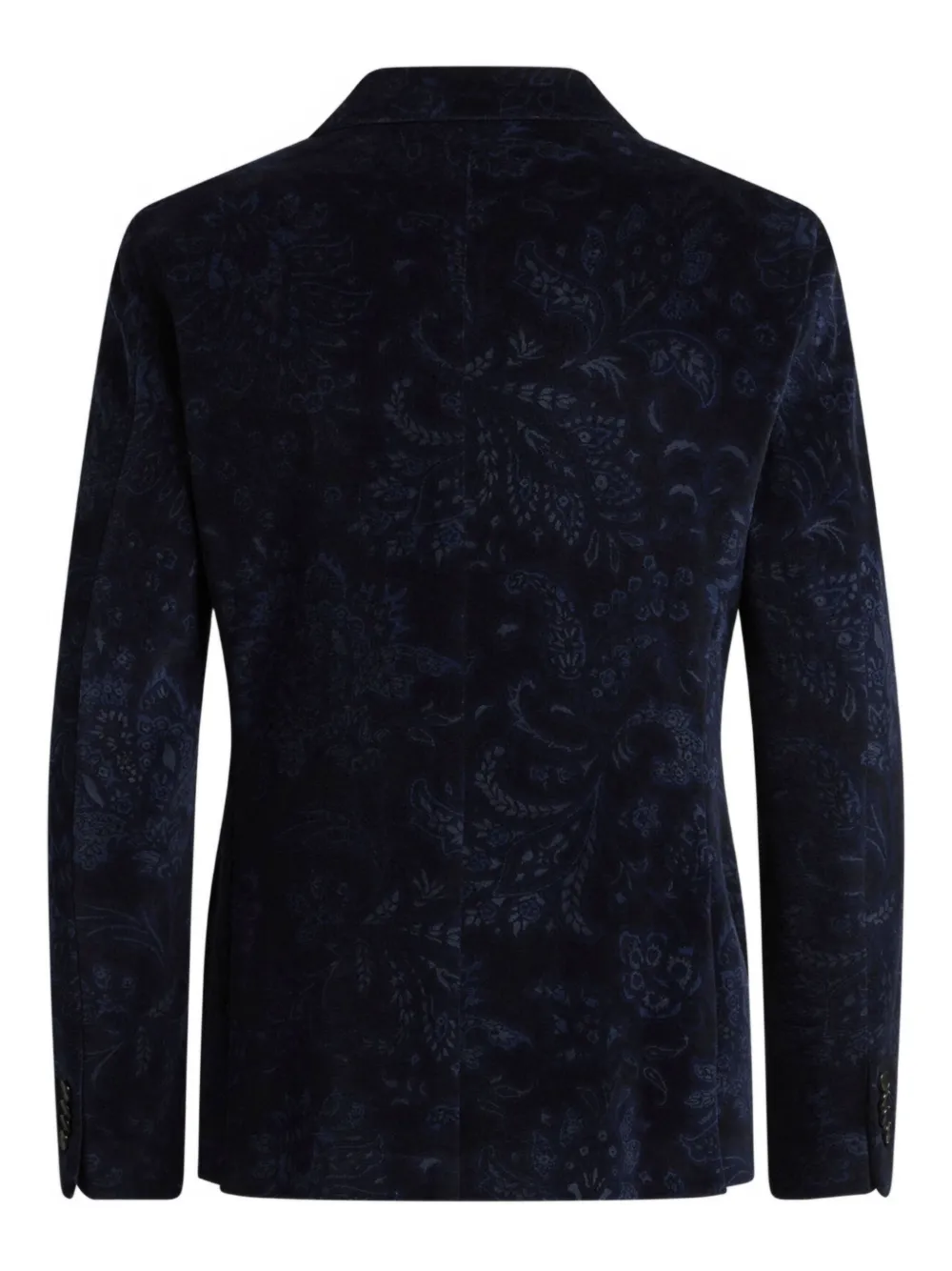 Однобортный пиджак с узором пейсли синего цвета, застежка на пуговицы, отворот с зазубринами