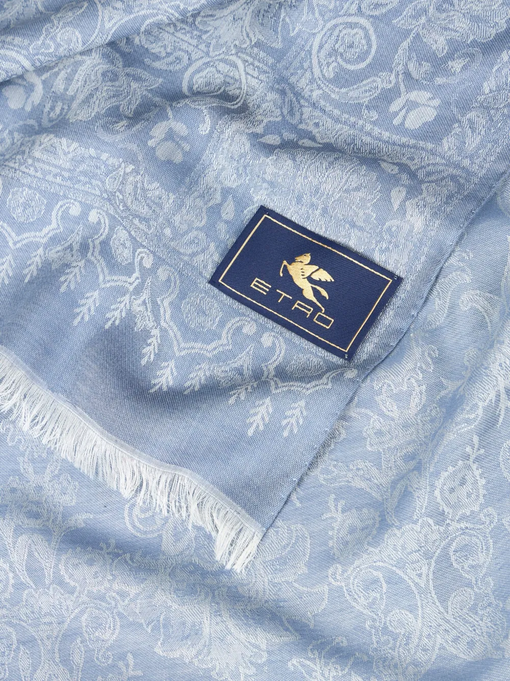 Светло-голубой жаккардовый узор с узором пейсли и бахромой по краям