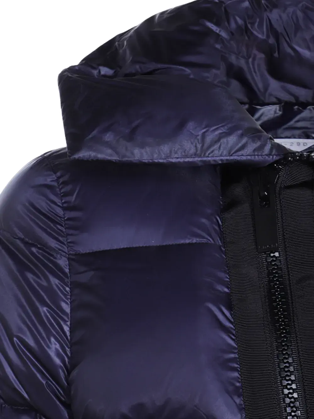 Темно-синий стеганый дизайн, высокий воротник, асимметричная застежка-молния, прорезные карманы