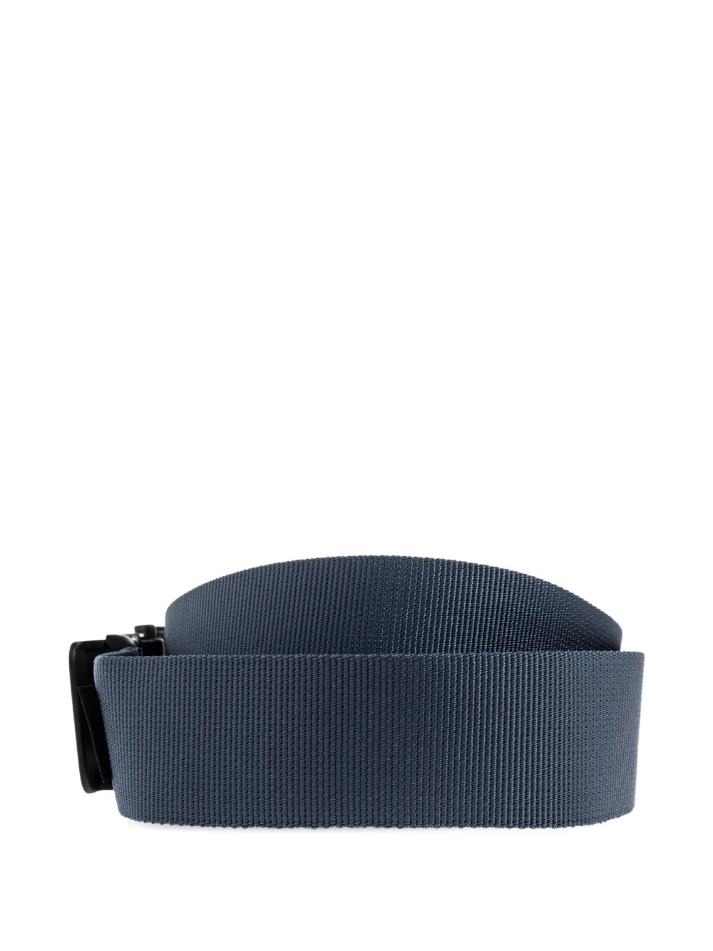 Ремешок из темно-синего текстиля, черная пряжка, тисненый логотип, ребристая текстура, едва заметный брендинг