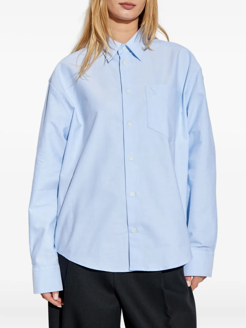 Рубашка с длинными рукавами и вышивкой AMI Paris, синий