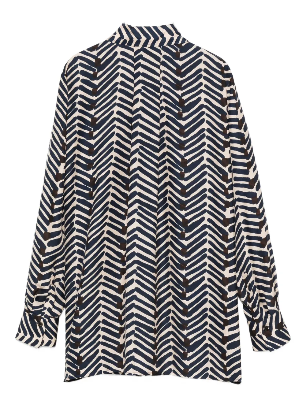 Синий узор «елочка», длинные рукава, воротник, потайная застежка, шелковый материал
