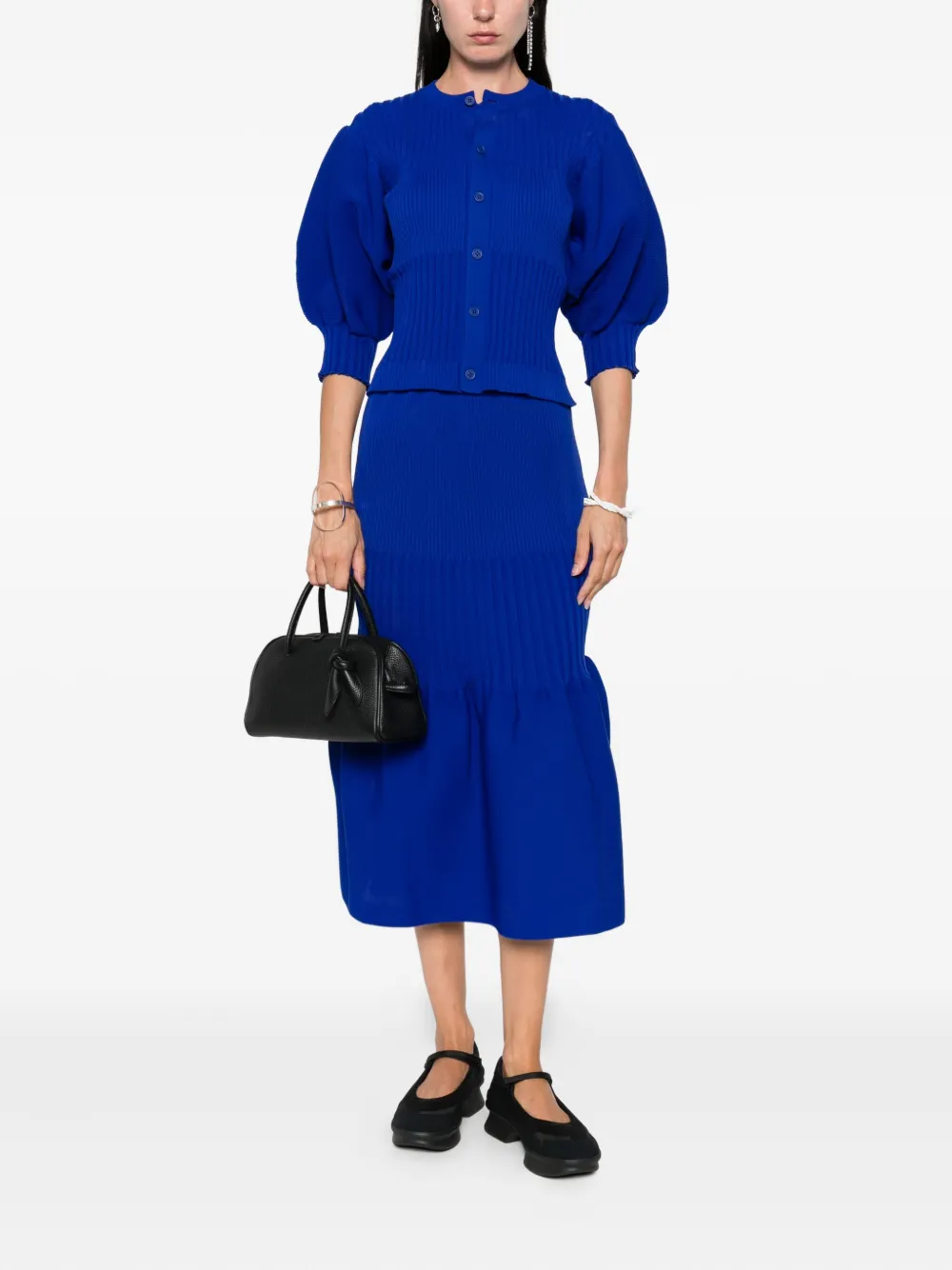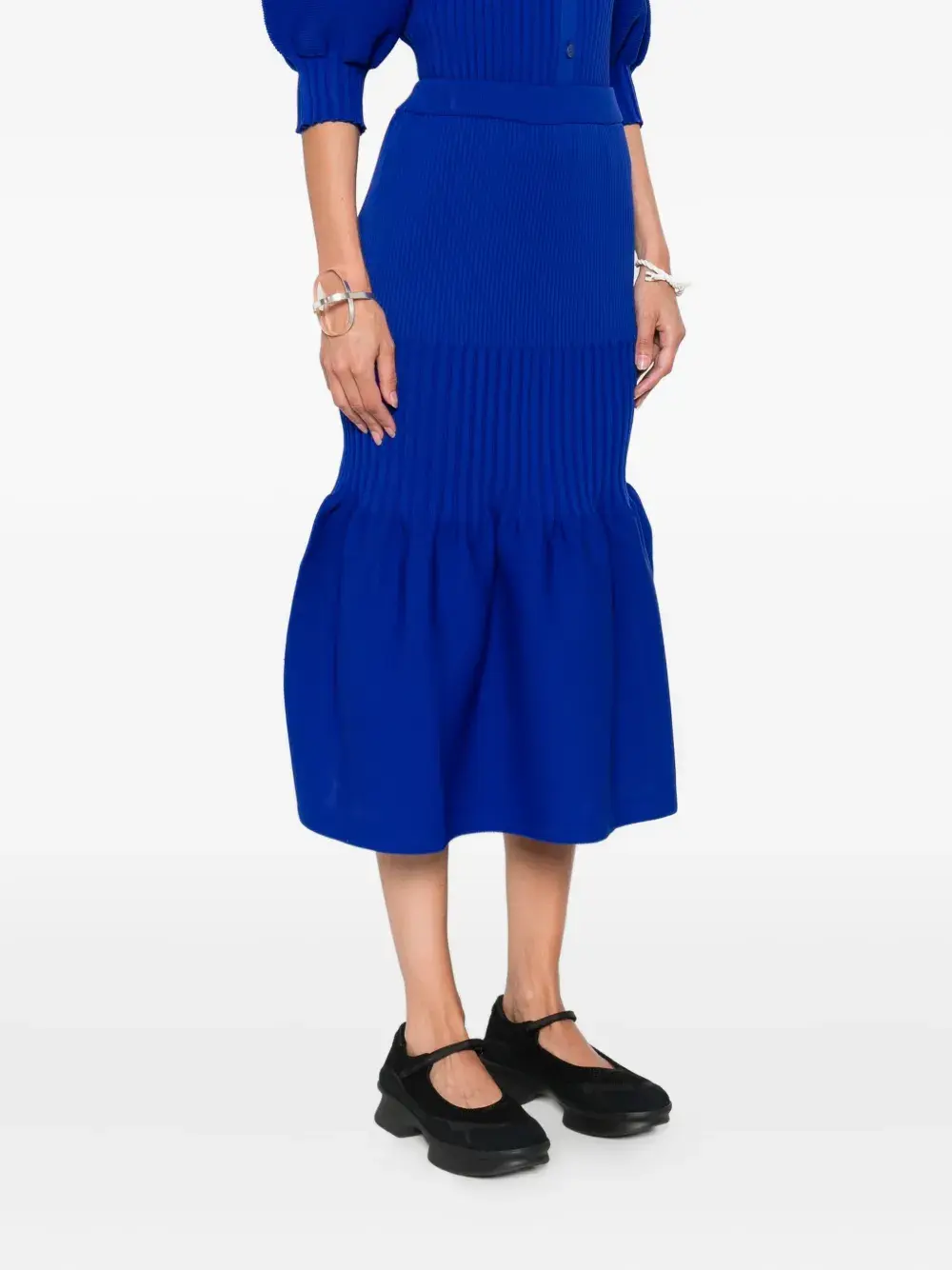 Юбка миди в рубчик с оборками CFCL, синий