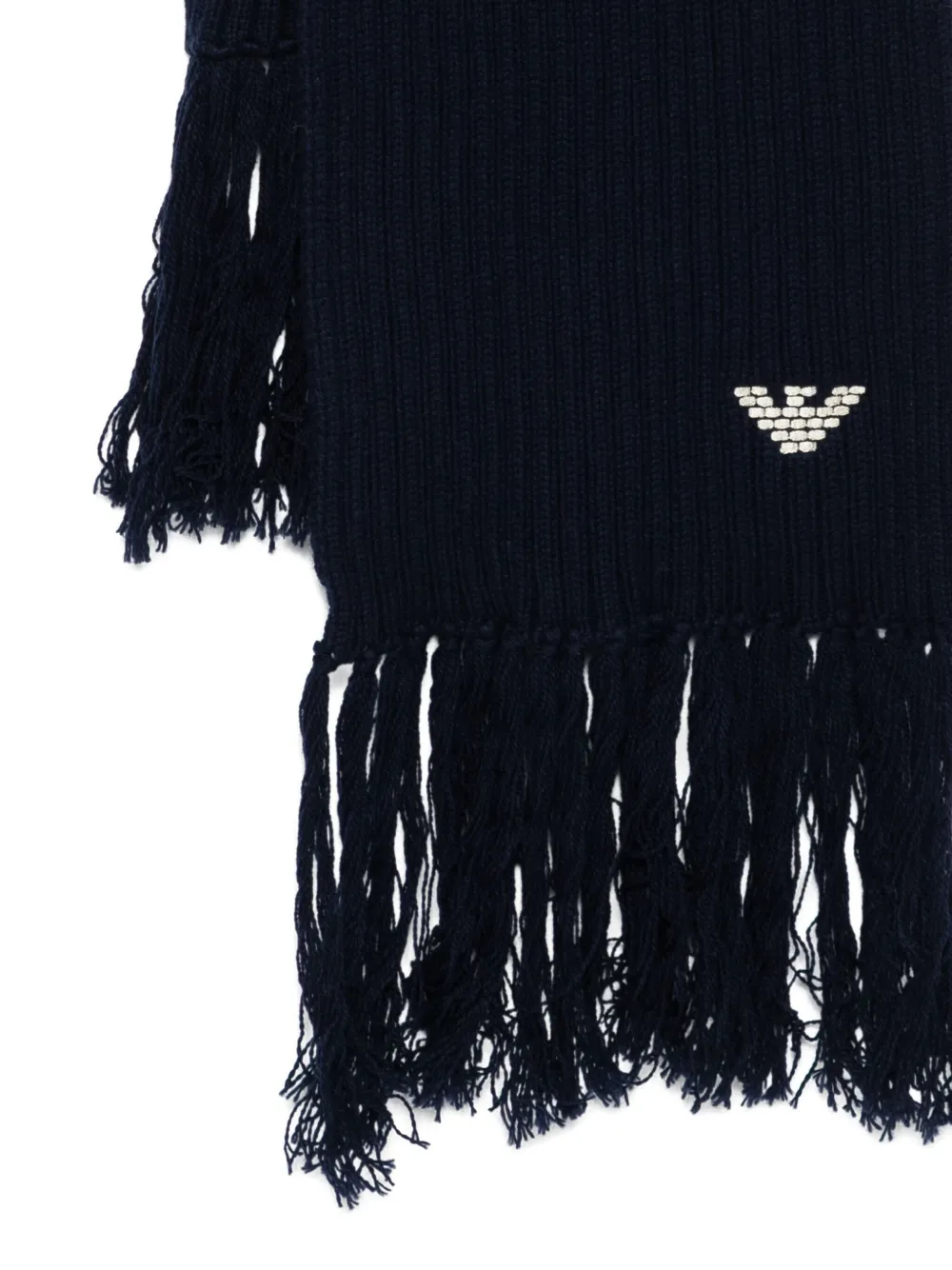 Шарф в рубчик с бахромой EMPORIO ARMANI, синий