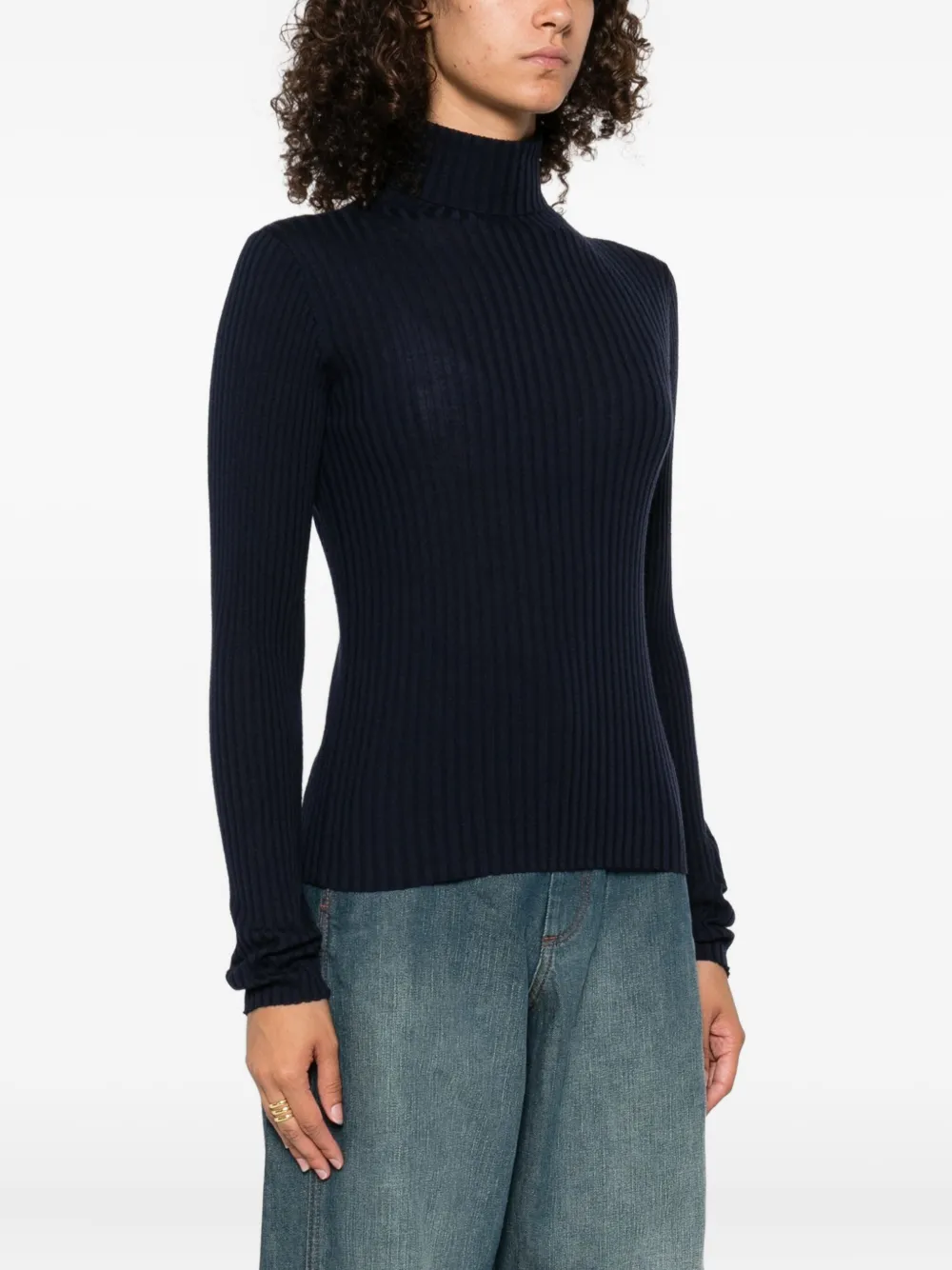 Свитер в рубчик с высоким воротником Soeur, синий