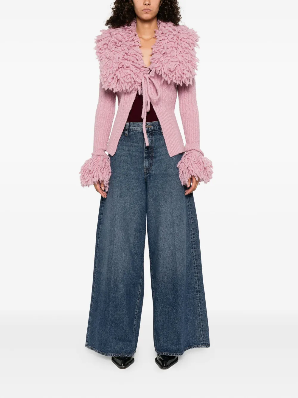 Синие широкие брюки с высокой талией, застежкой на пуговицы, передними карманами и задними карманами