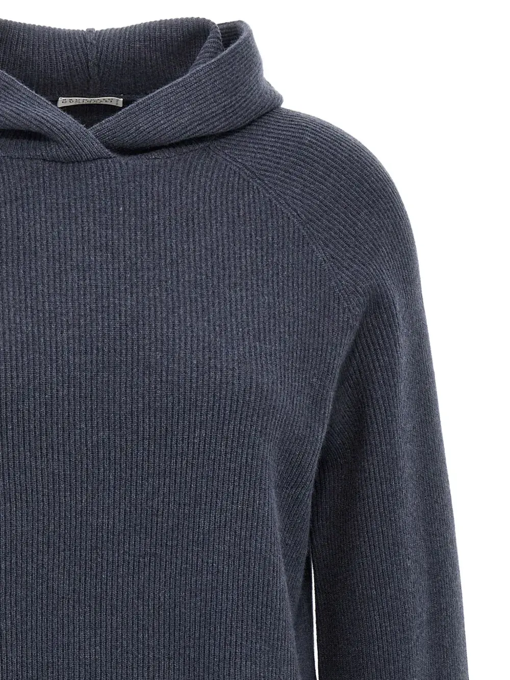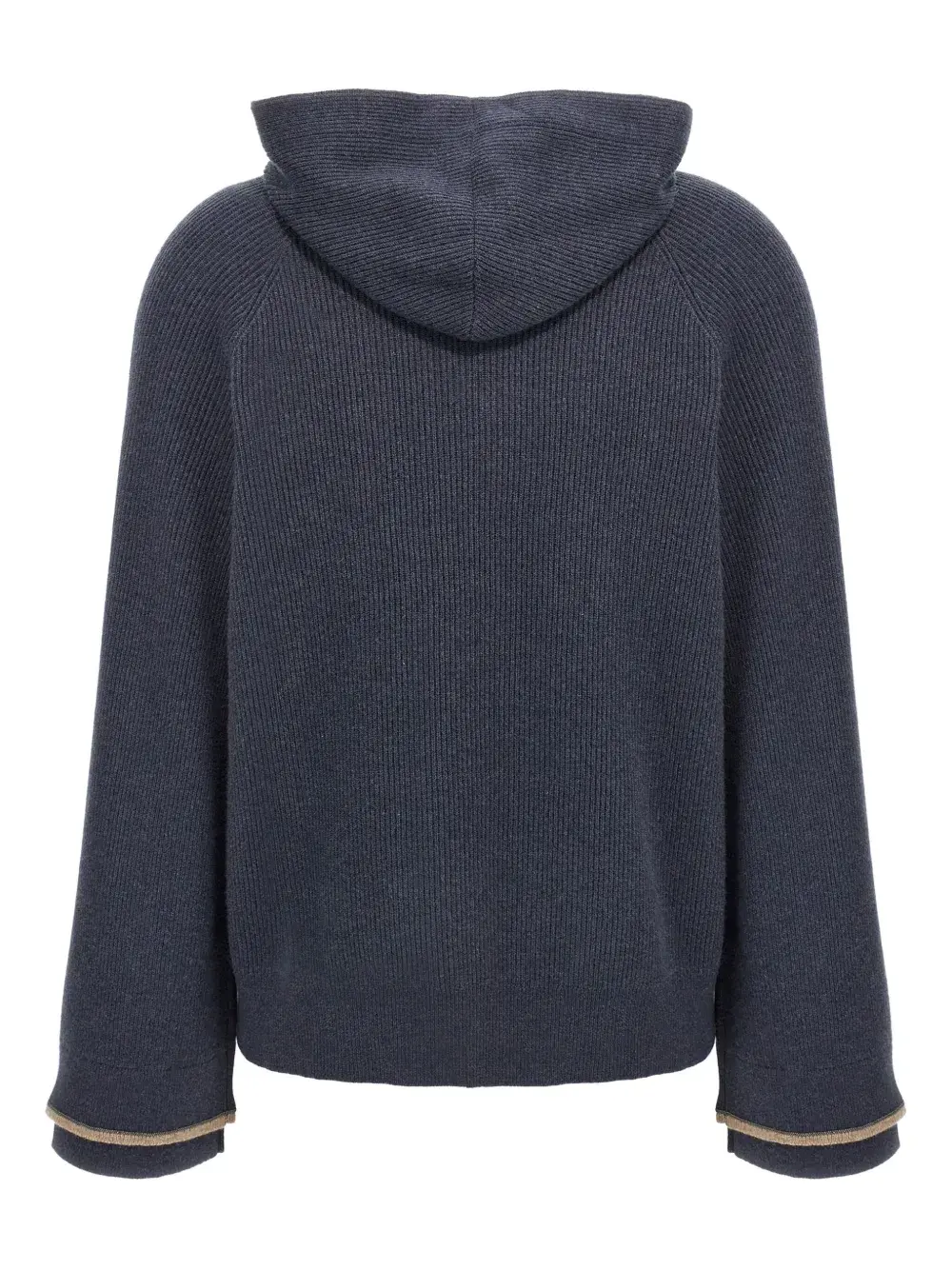 Свитер в рубчик с капюшоном Brunello Cucinelli, синий