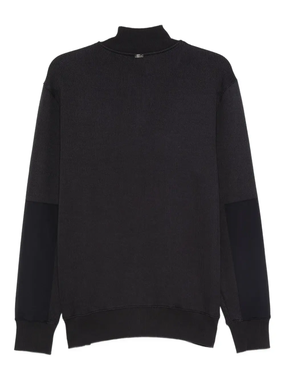 Темно-синий ребристая фактура воротника-стойки с застежкой на пуговицы, заплатки на локтях