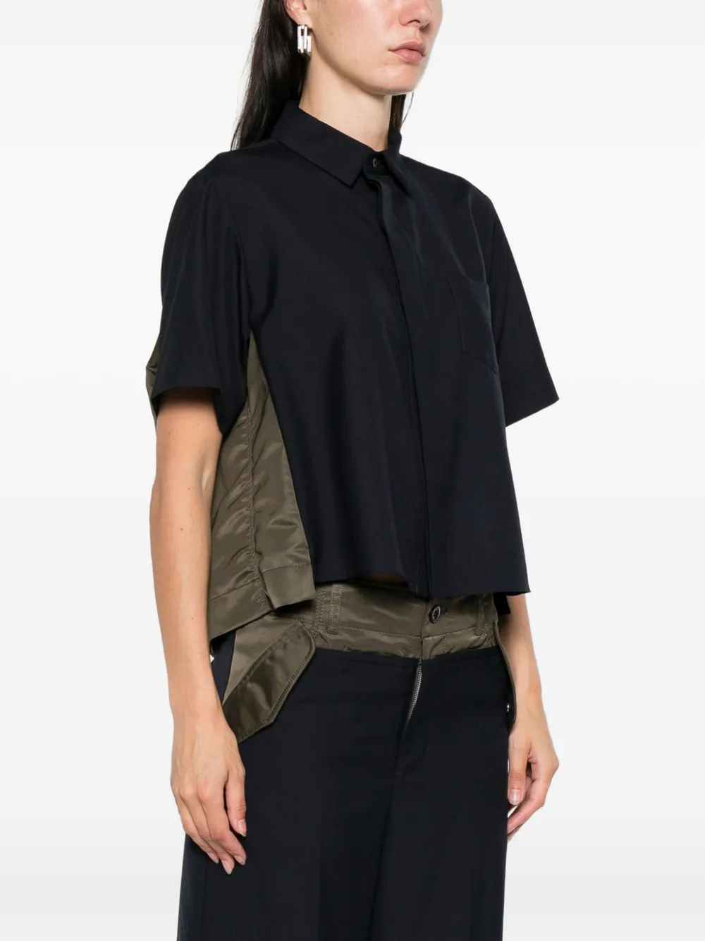 Рубашка с короткими рукавами и вставками SACAI, синий