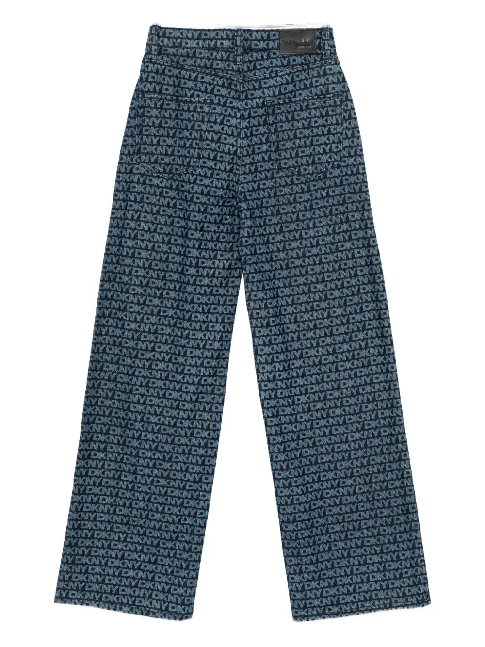 Синяя стальная ткань с логотипом по всей поверхности, застежка на пуговицы, пять карманов