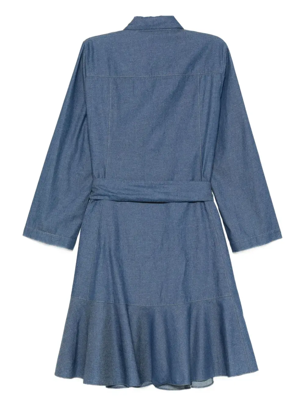 Пояс из хлопчатобумажной ткани среднего синего цвета с воротником-стойкой и завязывающимся ремнем