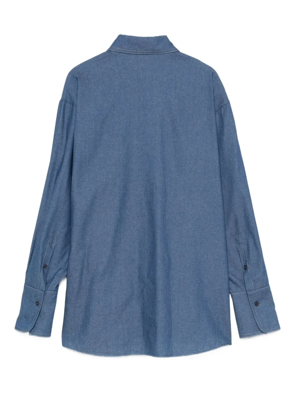 Средне-синяя хлопковая модель с воротником, длинными рукавами, застежкой на пуговицы и манжетами