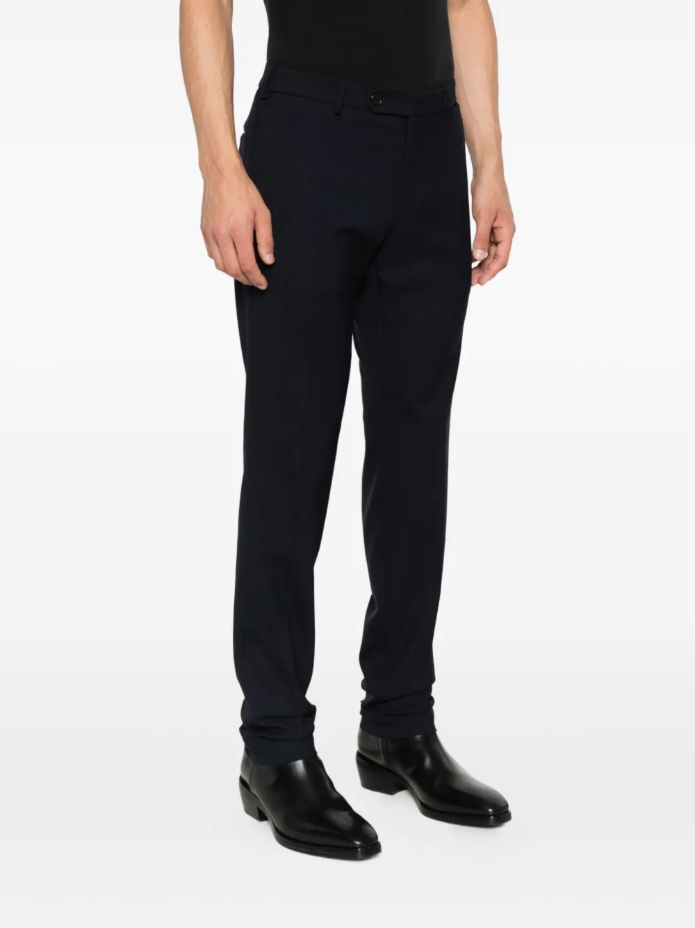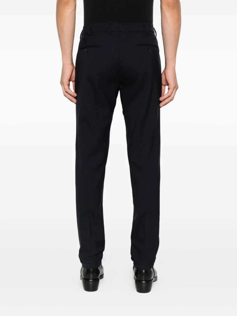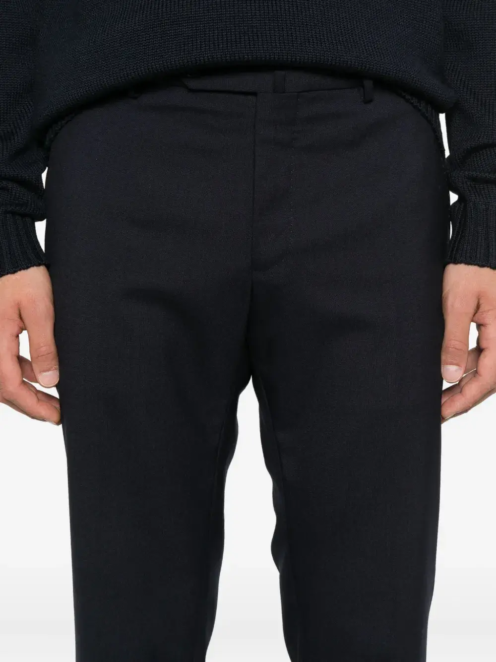 Темно-синяя хлопковая смесь, плоский перед, застежка на пуговицы, прямой крой, средняя посадка