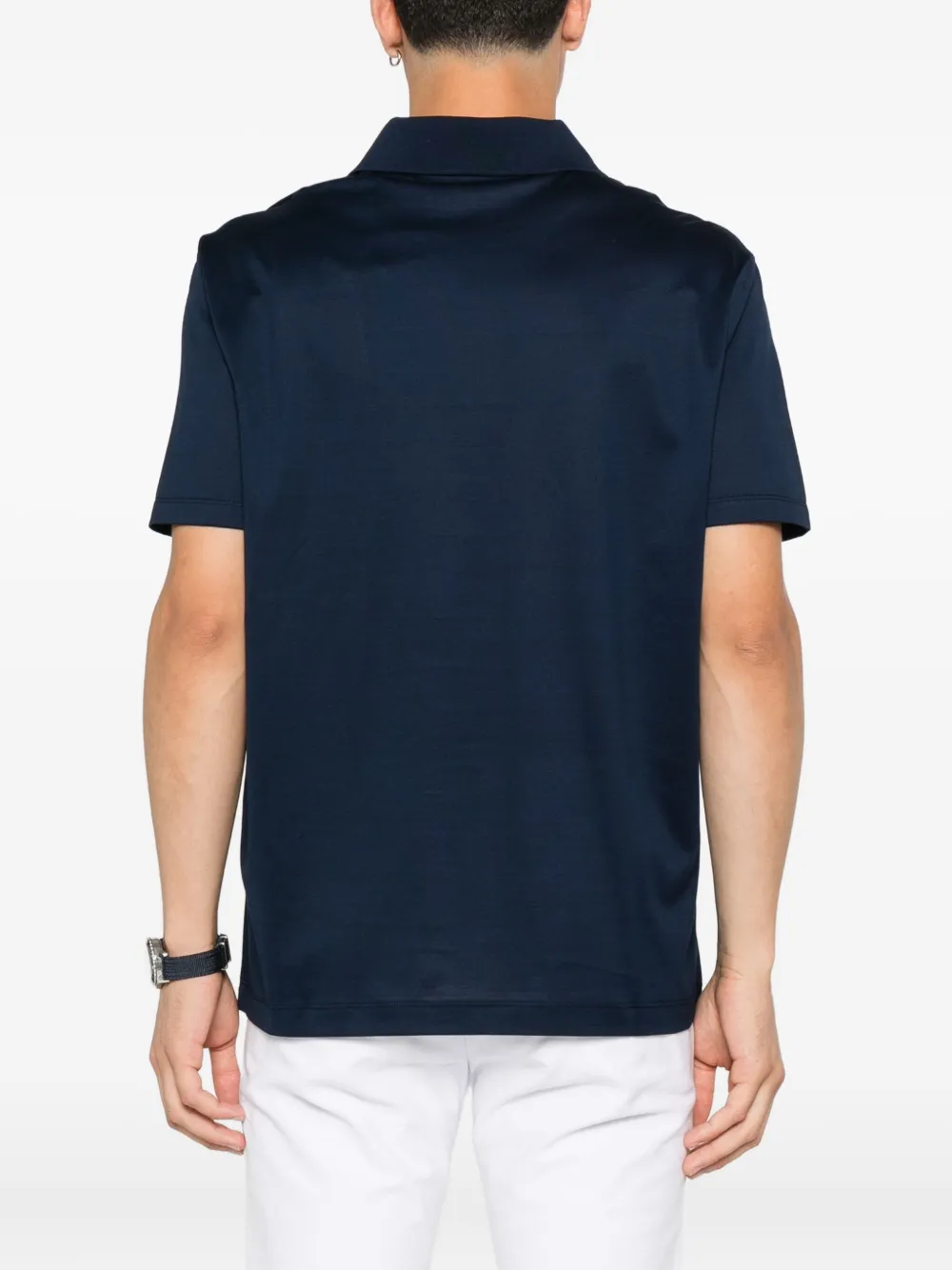 Темно-синий, короткие рукава, планка на пуговицах, вышитый логотип, хлопок