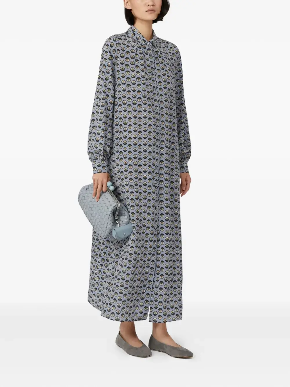 Шелковое платье-рубашка макси с принтом Weekend Max Mara, синий