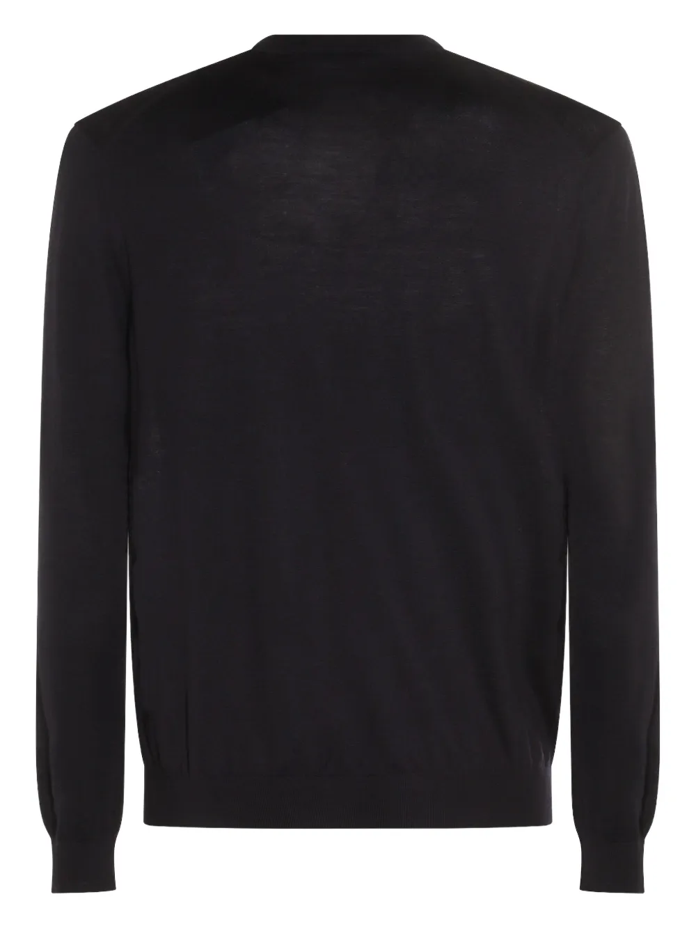 Темно-синий кашемировый жакет с круглым вырезом, длинными рукавами, ребристыми манжетами и подолом