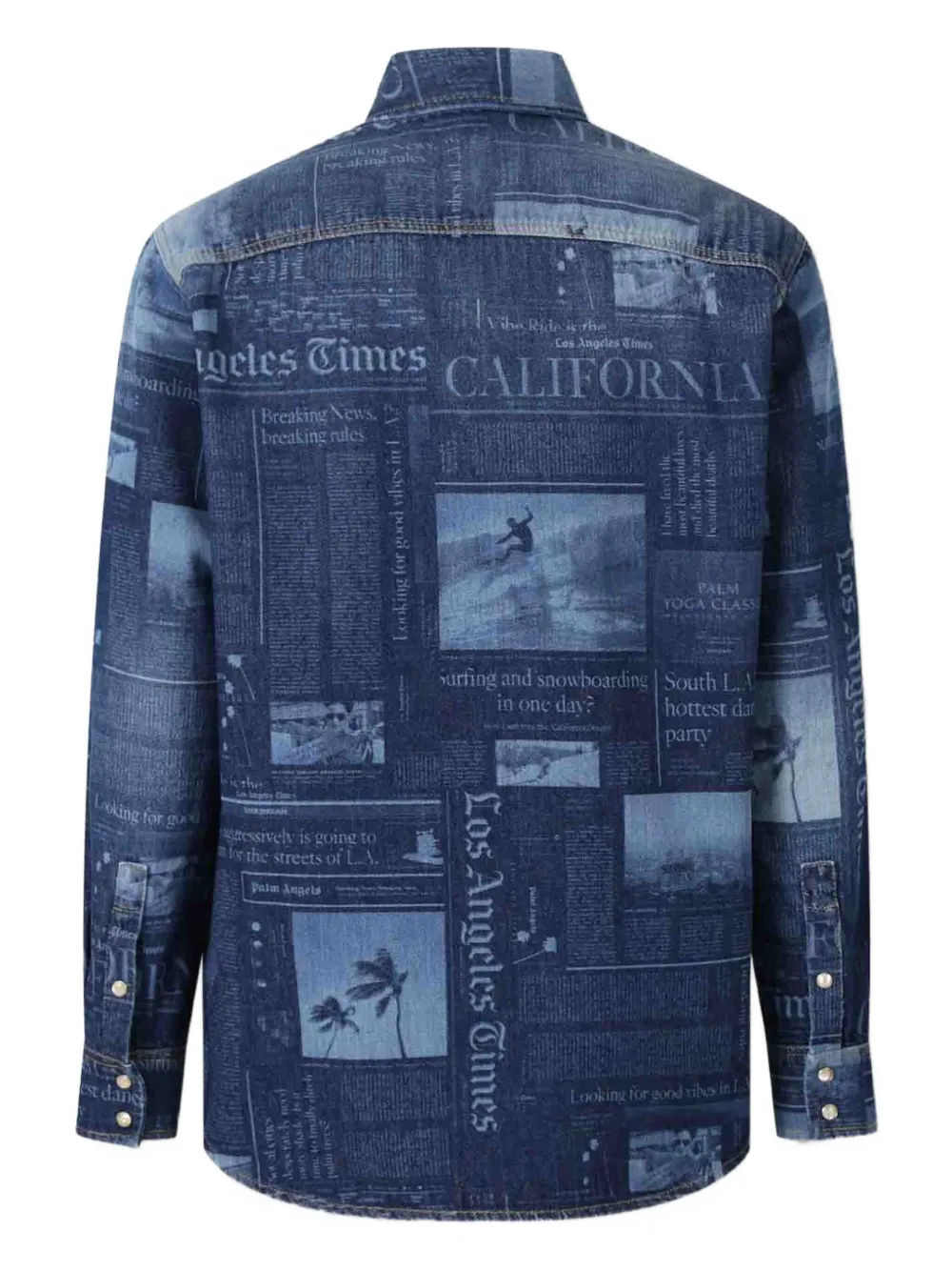 Джинсовая рубашка с газетным принтом PALM ANGELS, синий