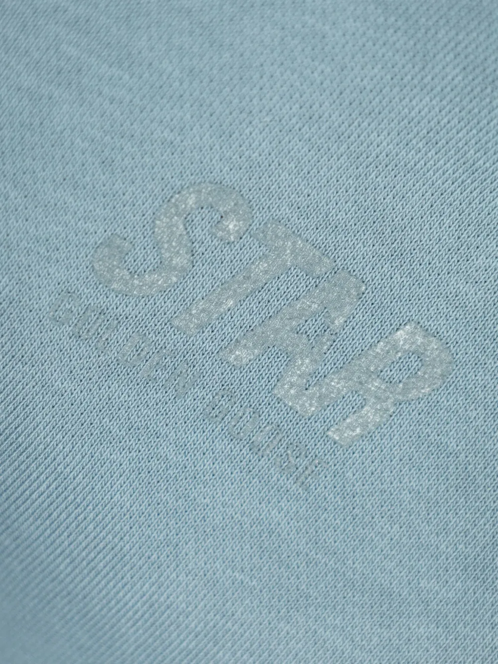 Светло-голубой капюшон, застежка-молния, длинные рукава, вышитый логотип