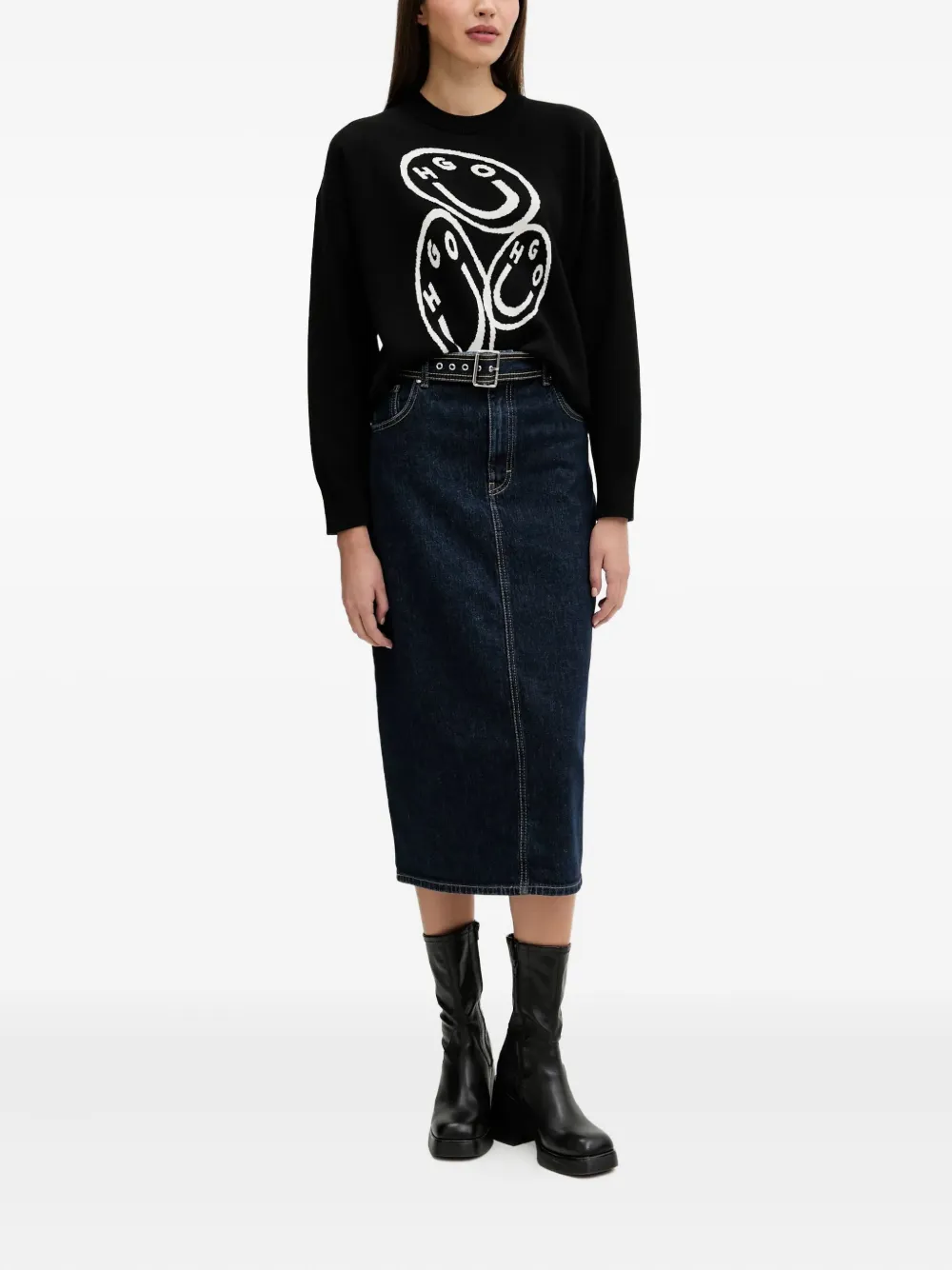 Джинсовая юбка миди с поясом HUGO, синий