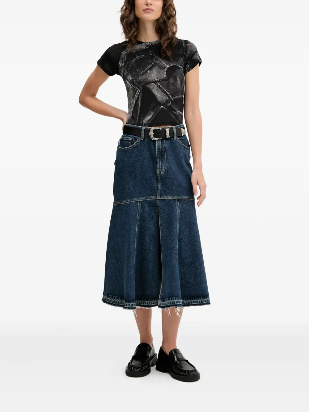 Расклешенная джинсовая юбка миди HUGO, синий
