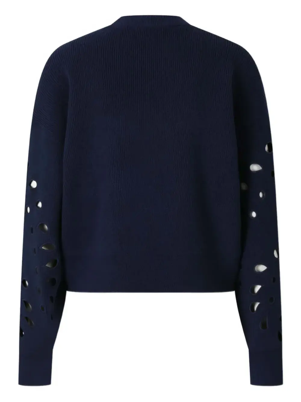 Темно-синий ребристая вязка, вырезы, круглый вырез, длинные рукава