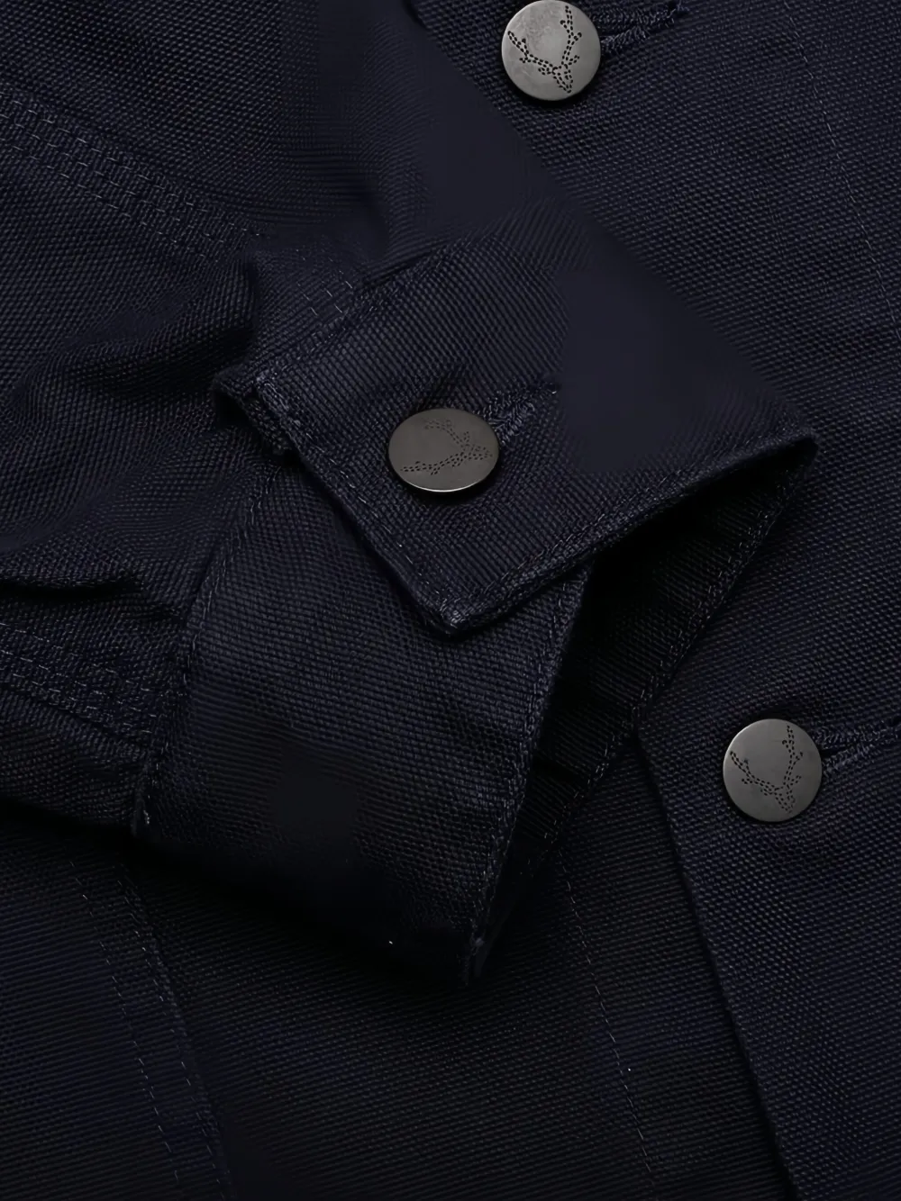 Темно-синяя застежка на пуговицы спереди, два нагрудных кармана, длинные рукава, манжеты на пуговицах