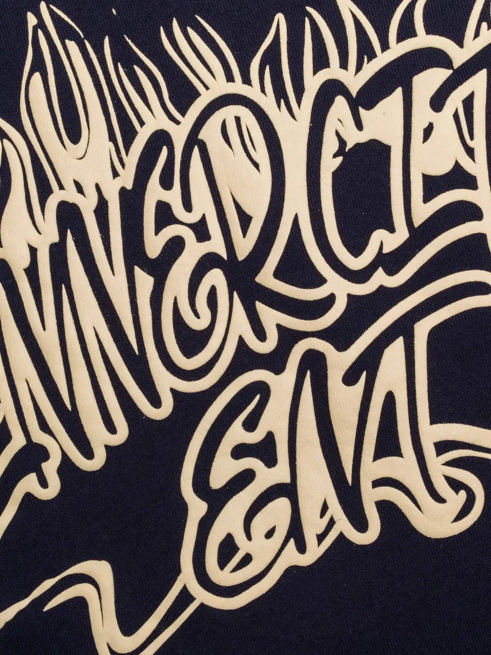 Темно-синий граффити с принтом пламени, спущенные плечи, ребристые манжеты, карман-кенгуру