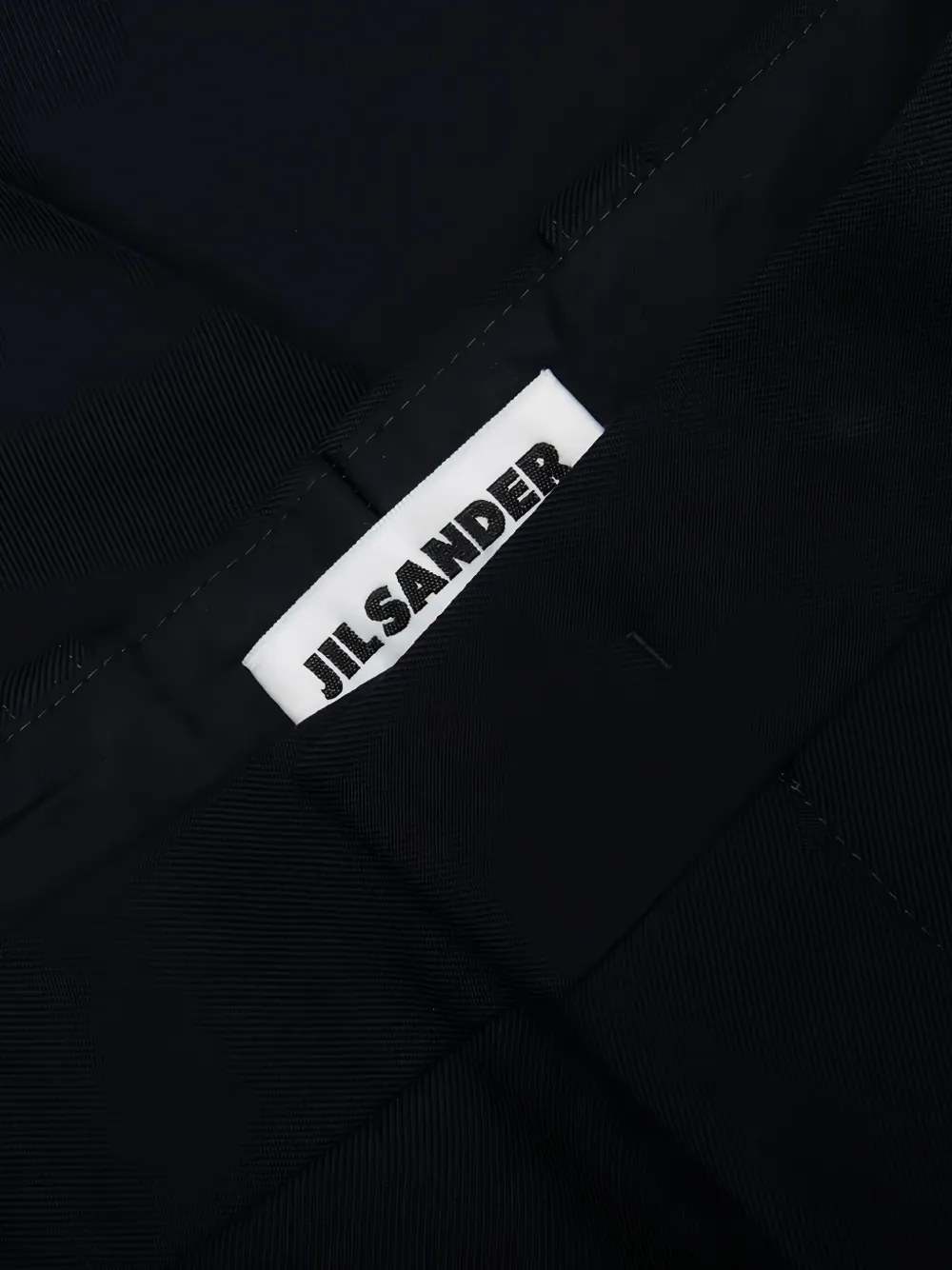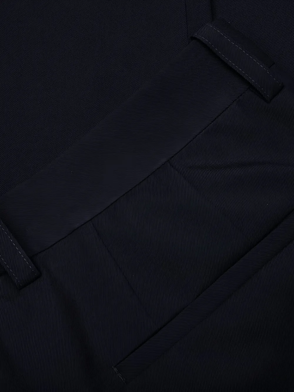 Темно-синие прорезные карманы, застежка на пуговицы, видимая отделочная строчка