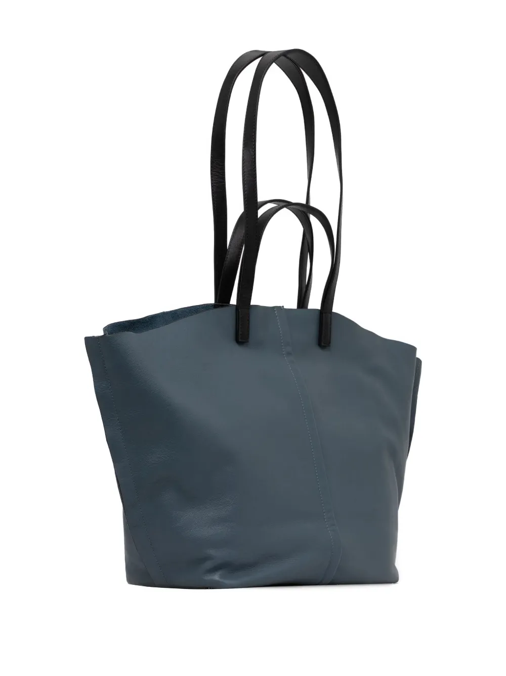 Кожа стального синего цвета, двойные верхние ручки, внутренний карман, панельный дизайн, верхняя строчка