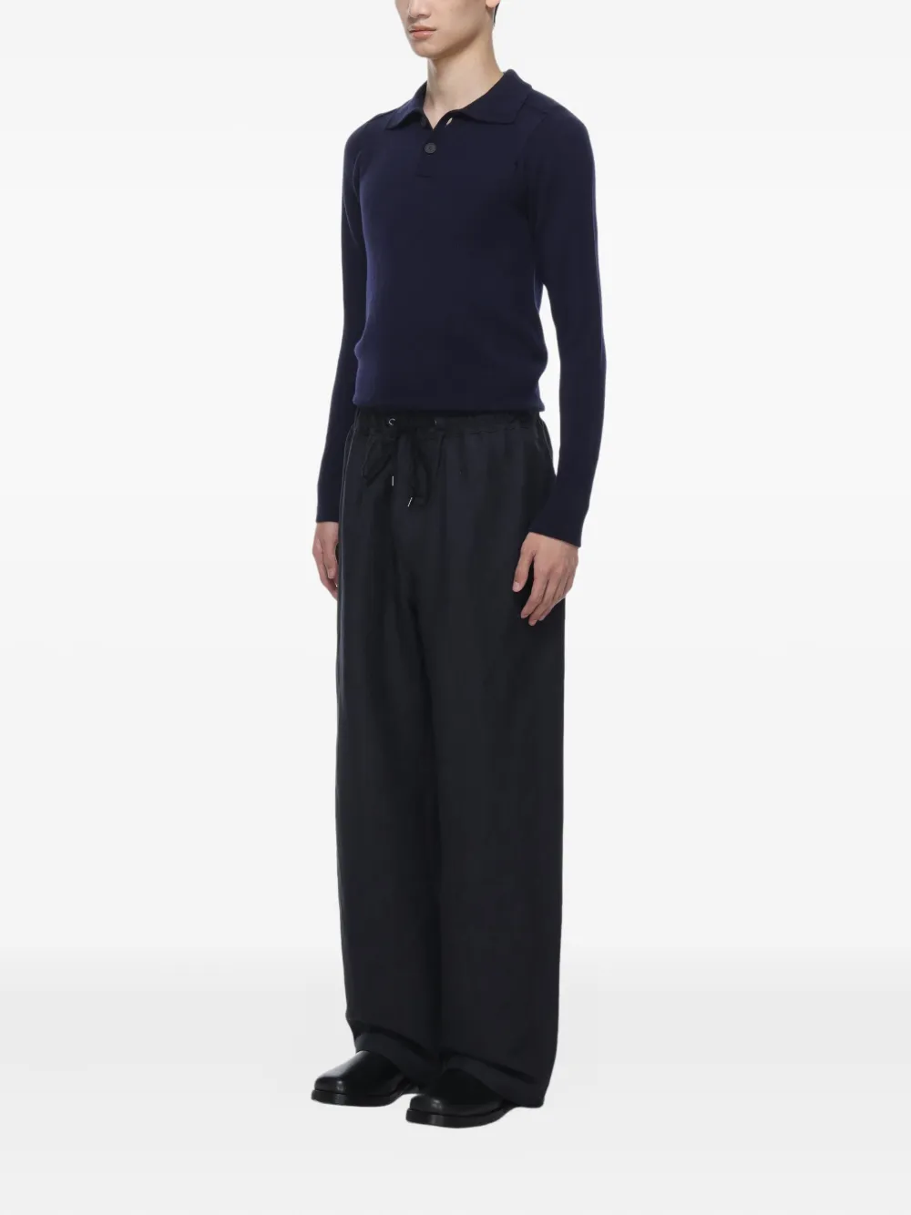 Шерстяная рубашка-поло с воротником-поло Studio Nicholson, синий 32 145₽